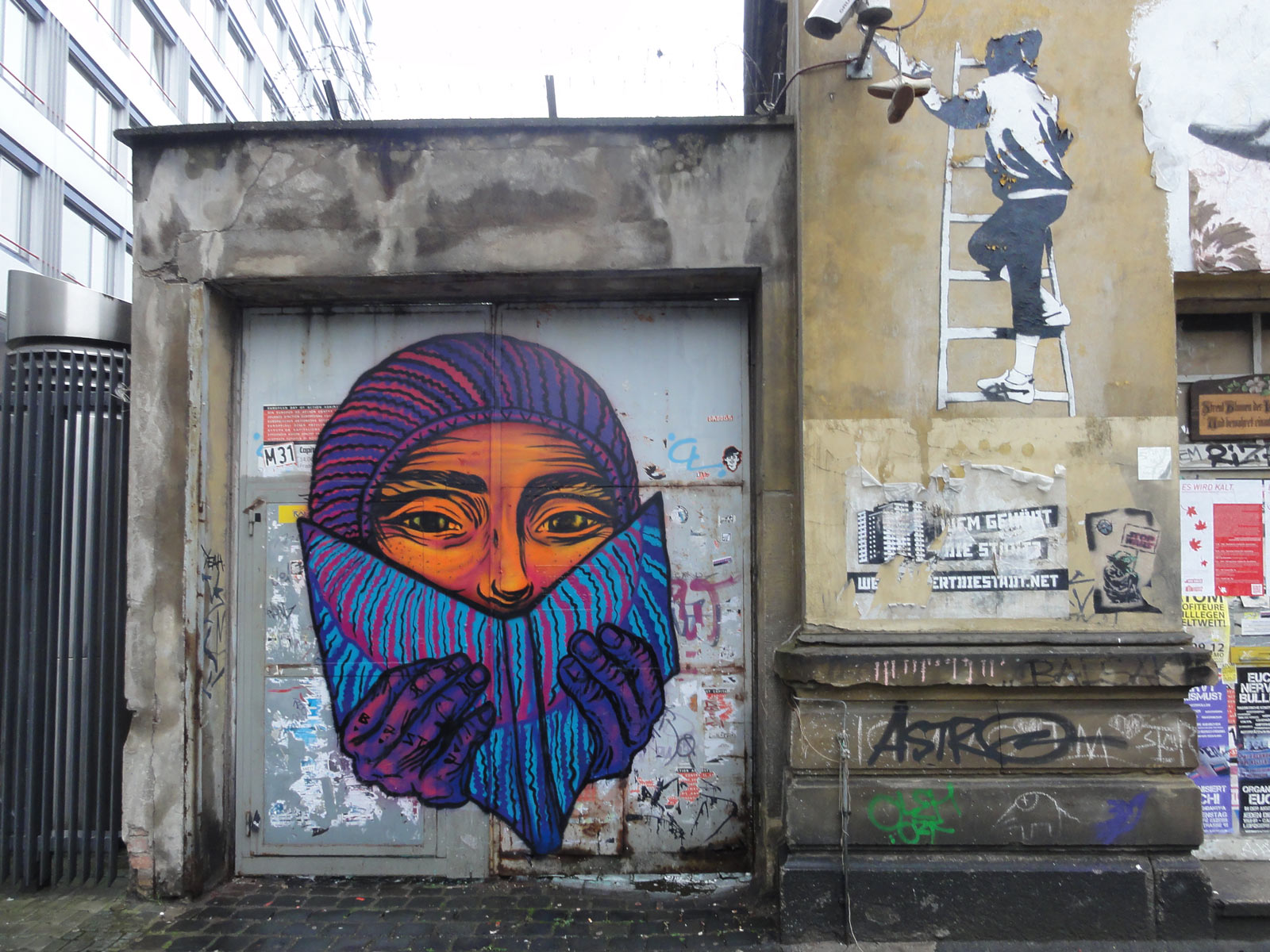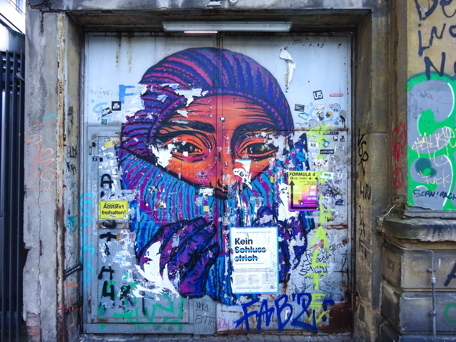 In unregelmäßigen Abständen lassen sich an den Fassaden des ehemaligen Polizeigefängnisses in der Klapperfeldstraße kreative Veränderungen und deren Beseitigung beobachten. Die Tür links vom Eingang kannte ich bisher nur mit diesem Motiv: