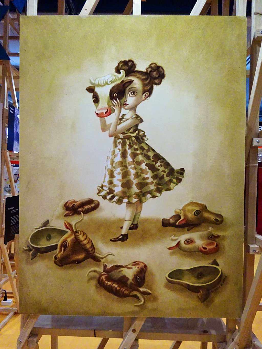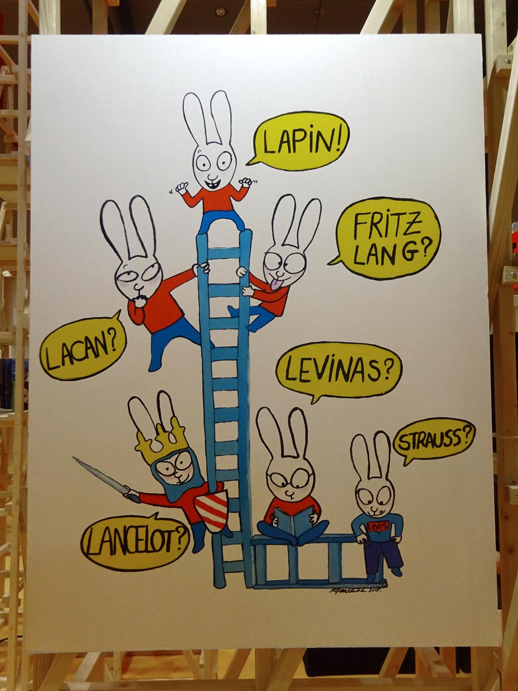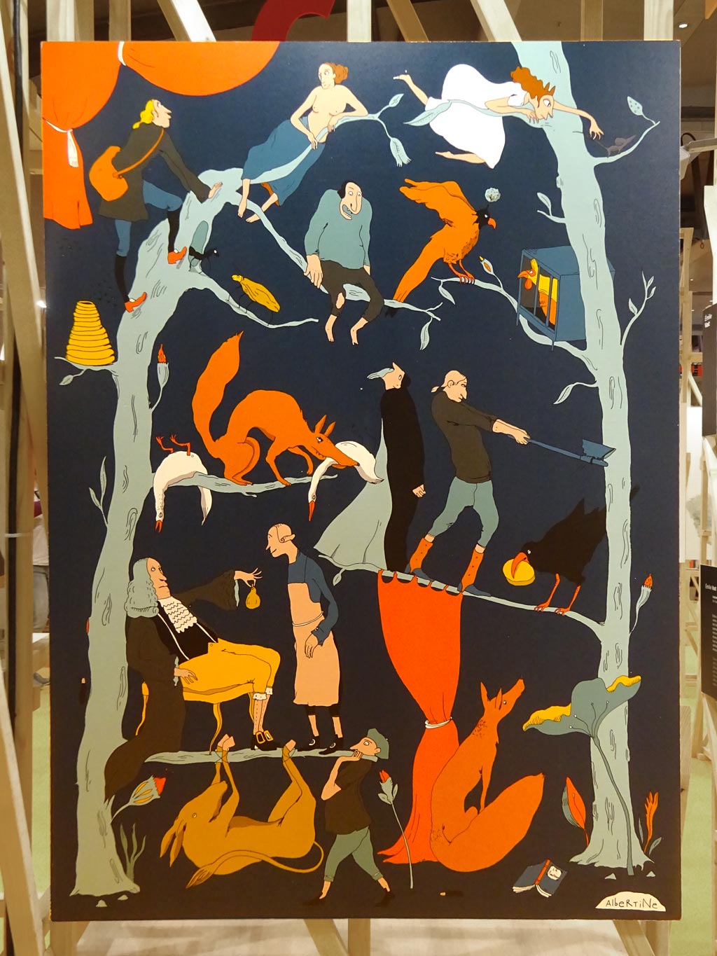 Unter den über 20 Themen, die im Pavillon „Francfort en français“ präsentiert werden, befindet sich nach dem Eingang rechts eine sehenswerte Ausstellung in Form eines ABCs, organisiert vom Salon du livre et da la presse jeunesse in Seine-Saint-Denis. Hierfür haben 26 französischsprachige Kinder- und JugendbuchIllustrator*innen für jeden Buchstaben des Alphabets zehn Wörter oder Redewendungen in Szene gesetzt.