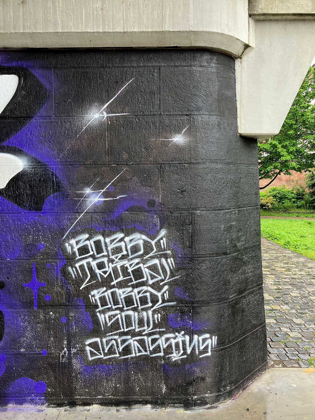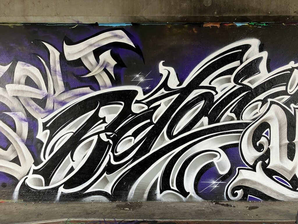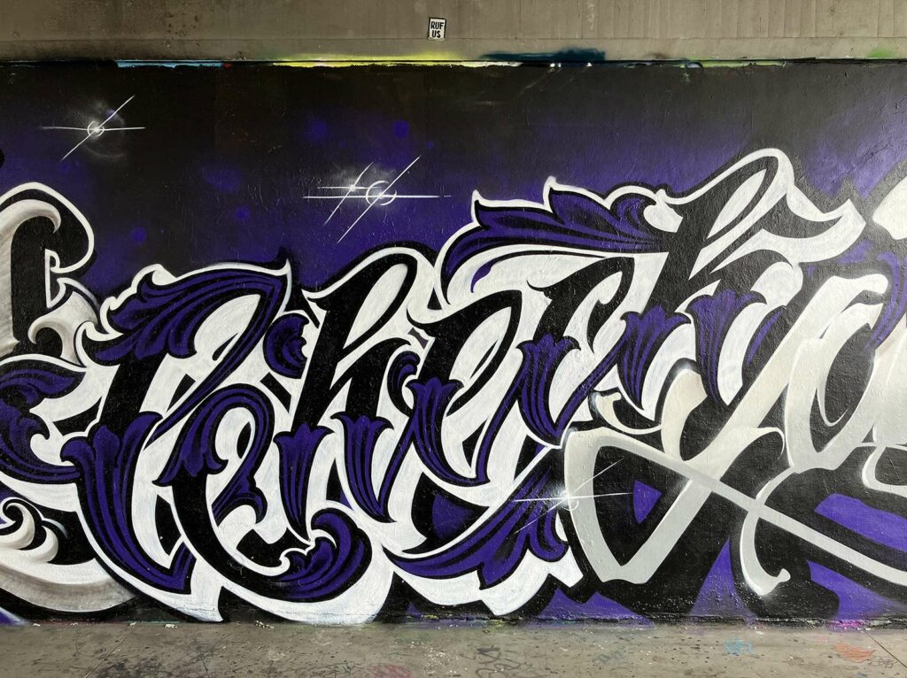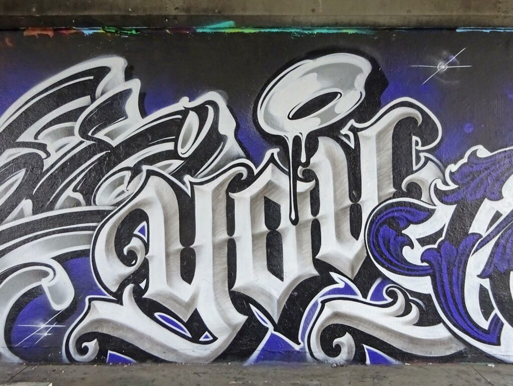 Treffen sich Tattoo- und Graffiiti-Künstler aus Deutschland, Italien, Mexiko, Russland und den USA zu einer Lettering Session an der Frankfurter Friedensbrücke: „Wreck yourself before you check yourself“ von Mr. Flaks @flaks32g (Wreck), Angel Lira @angelstat2 (Your), Mattone @mattone_12.13 (Self), Ivan Fansta @fanstaknado (Before), Maksim Primo @maksimprimo (You), Buster Duque @busterduque (Check) und Dustin @dustin_tattooism (Yourself).