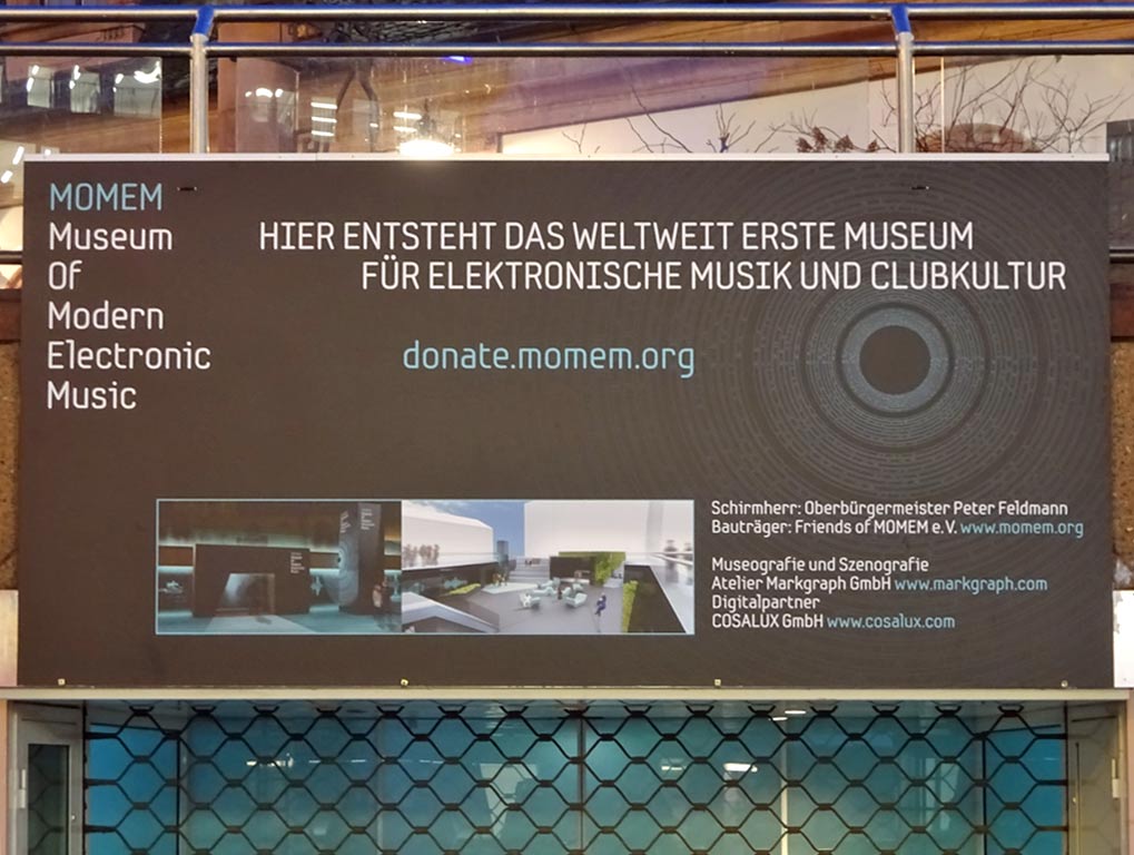 Techno ist alt geworden und kommt nun ins Museum. Die Eröffnung des Museum of Modern Electronic Music (kurz: MOMEM)in Frankfurt am Main, ist für Frühjahr 2019 vorgesehen.