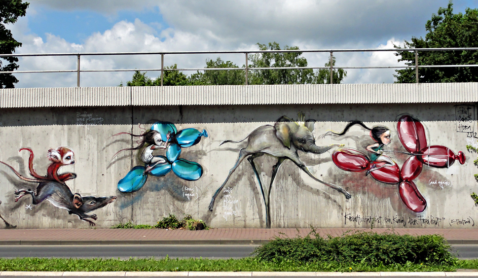 Die weltweit bekannte Streetart des Duos Herakut ist hier im Blog schon öfters thematisiert worden, so z.B. auch mit Fotos zu dem Werk in Bad Vilbel aus dem Jahre 2012, wo sie zusammen mit Case einen weiteren Abschnitt der Wand an der Kasseler Straße bemalten.