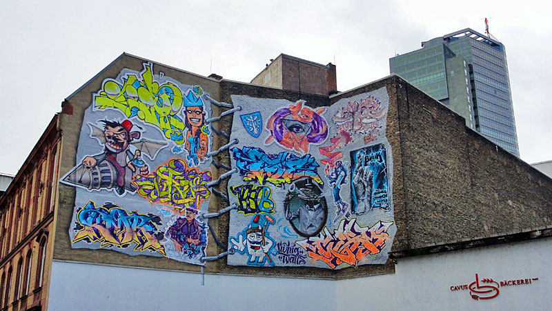 Offenbach meets Istanbul, respektive „Istanbul meets Offenbach“, lautete das Motto des Graffiti- und Kulturevents von Living Walls, welches vom 13. bis 15.September 2013 mehrere Künstler aus diesen beiden Städten zusammenführte. Das gemeinsame Werk entstand in der Sandgasse, unweit des großen Werkes von Ij-Jin Atem Choi, auf einer Fläche von etwa 250 m².