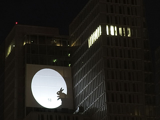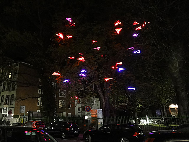Auf den 10 Fotos sind folgende Projekte zu sehen: 1. Blickträume (Bornheim), 2. Illumination der Osthafenbrücke (Ostend), 3. Unfinished Mystery (Ostend), 4. Bunny SW (Innenstadt), 5. Orchestrating The Depth Of Light (Innenstadt), 6. Paint The Literaturhaus (Innenstadt), 7. Organischer Lichtbaum (Ostend), 8. Lampyris Noctiluca (Ja, der Mann war echt, lebendig!)(Altstadt), 9. 1 Minute Ruhm (Altstadt), 10. Reflecting Space, Messier-Objekte (Altstadt).