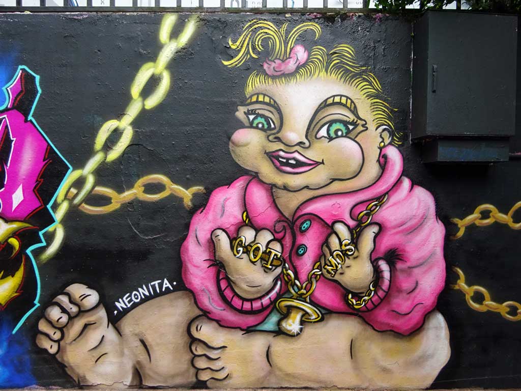 Beim diesjährigen Graffitikunst-Festival „Meeting of Styles“ in Wiesbaden war die Crew auch vor Ort. Gemalt wurde u.a. Vicky Pollard, eine Figur aus der BBC-Serie „Little Britain“, ergänzt mit der deutschen Übersetzung ihres markanten Spruchs „Yeah but no but yeah but no“.