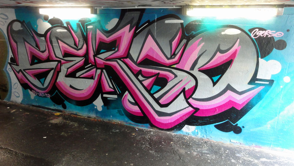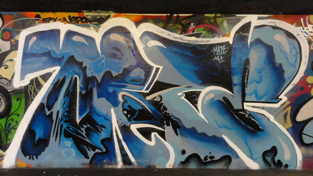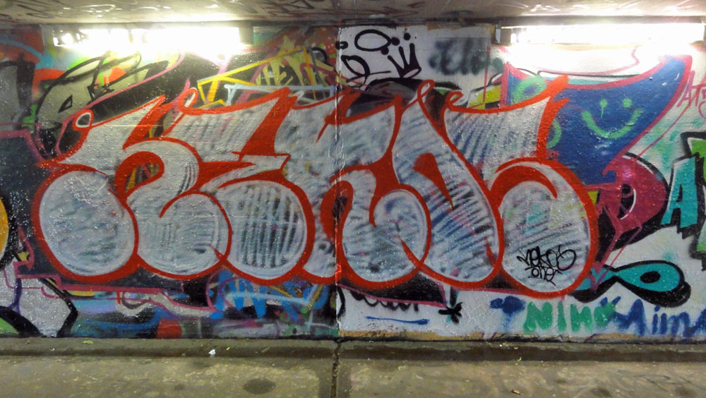 Außer den Murals (z. B. von Koz Dos und Wild Drawing), die etwas abseits vom eigentlichen Geschehen entstanden sind und den demnächst auch hier im Blog zu sehenden XXL-Wänden beim Brückenkopf Mainz-Kastel, gibt es entlang des Areals, auf dem das MeetingOfStyles- Festival in Wiesbaden Jahr für Jahr stattfindet, auch deutlich kleinere Flächen, die bemalt werden, zum Beispiel beim Zugangsbereich von der Rathausstraße kommend.
