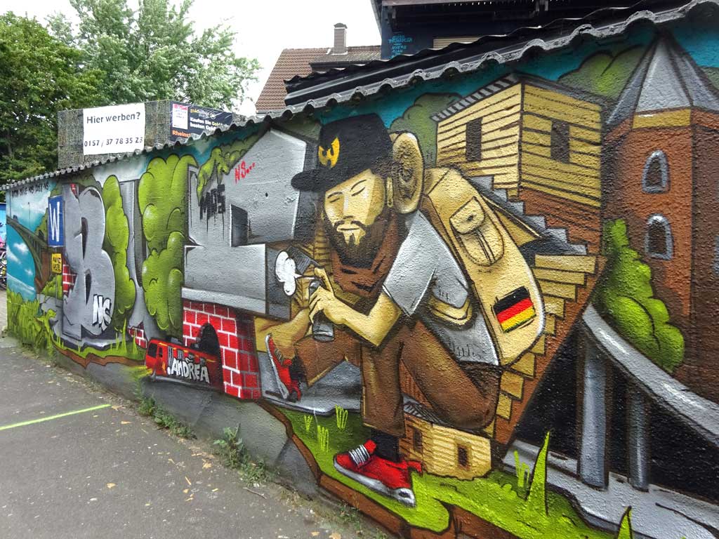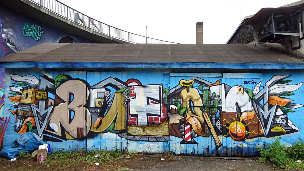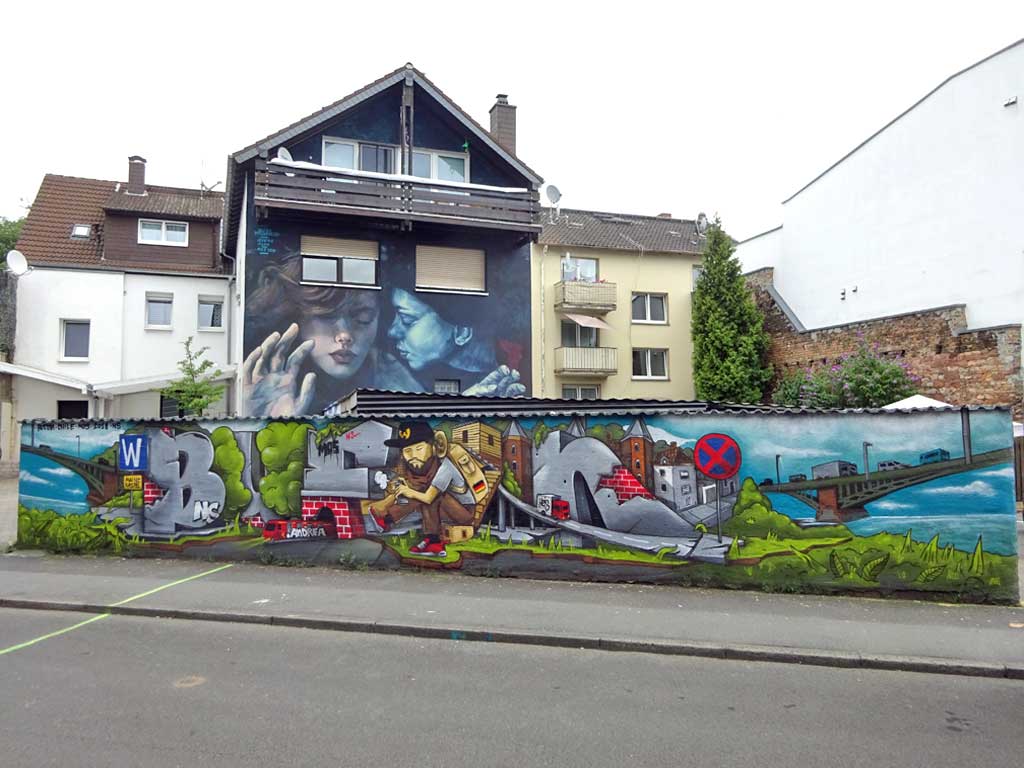Anlässlich des internationalen Graffitikunst-Festivals „Meeting Of Styles“, sind am vergangenen Wochenende in Wiesbaden zahlreiche neue Bilder entstanden. In Sichtweite zum „The Secret“-Murals von Guido Palmadessa und Alan Myers, hat der chilenische Graffitikünstler Bufon eine weniger hohe, aber dafür recht breite Wand bemalt.