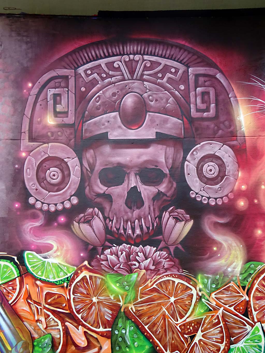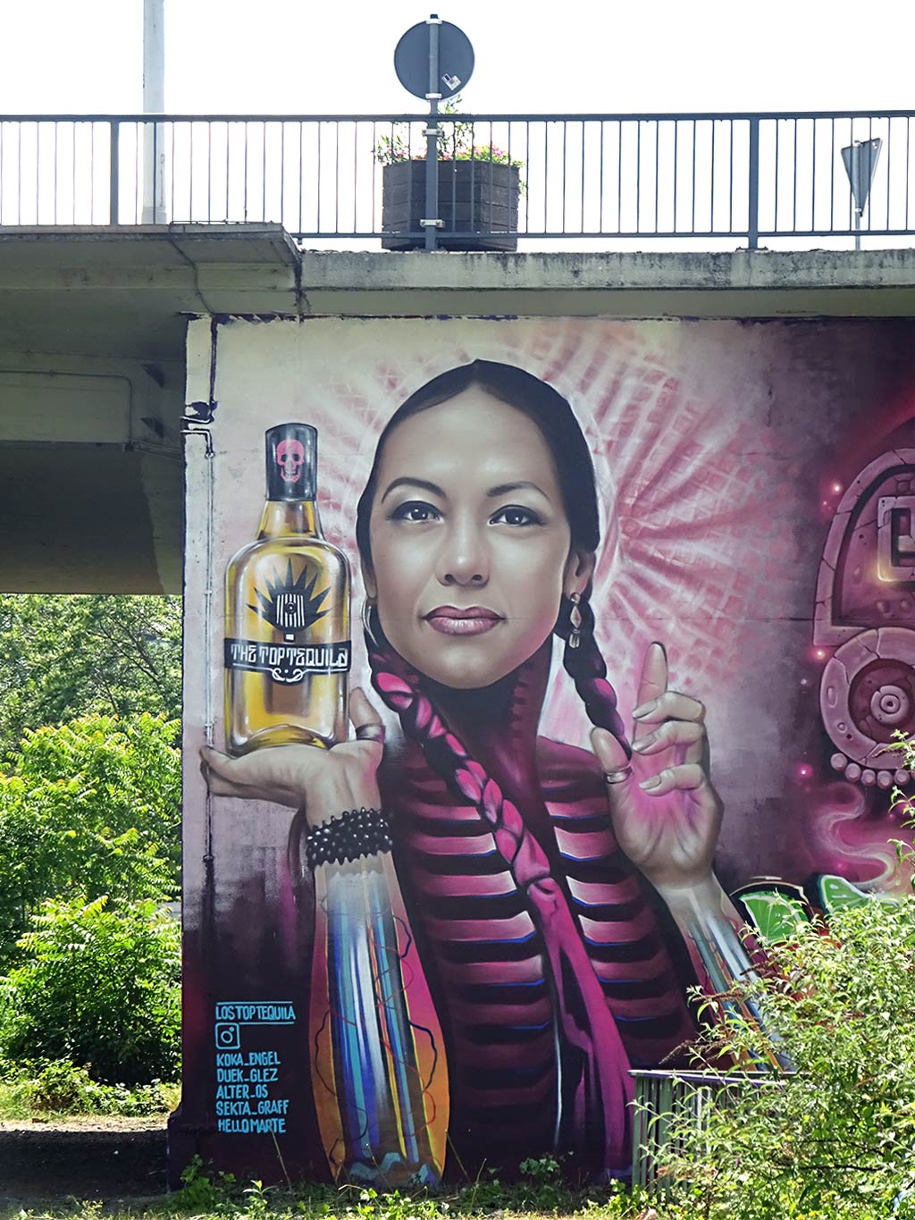 Wie auch schon im vergangenen Jahr, haben sich Künstler aus Mexiko und Italien zusammengetan, um beim Graffitikunst-Festival Meeting of Styles in Wiesbaden gemeinsam eine Wand zu gestalten. Diesmal waren am Werk: @Alter OS, @Duek Glez, @Hello Marte, @Koka Engel und @Sekta Graff.