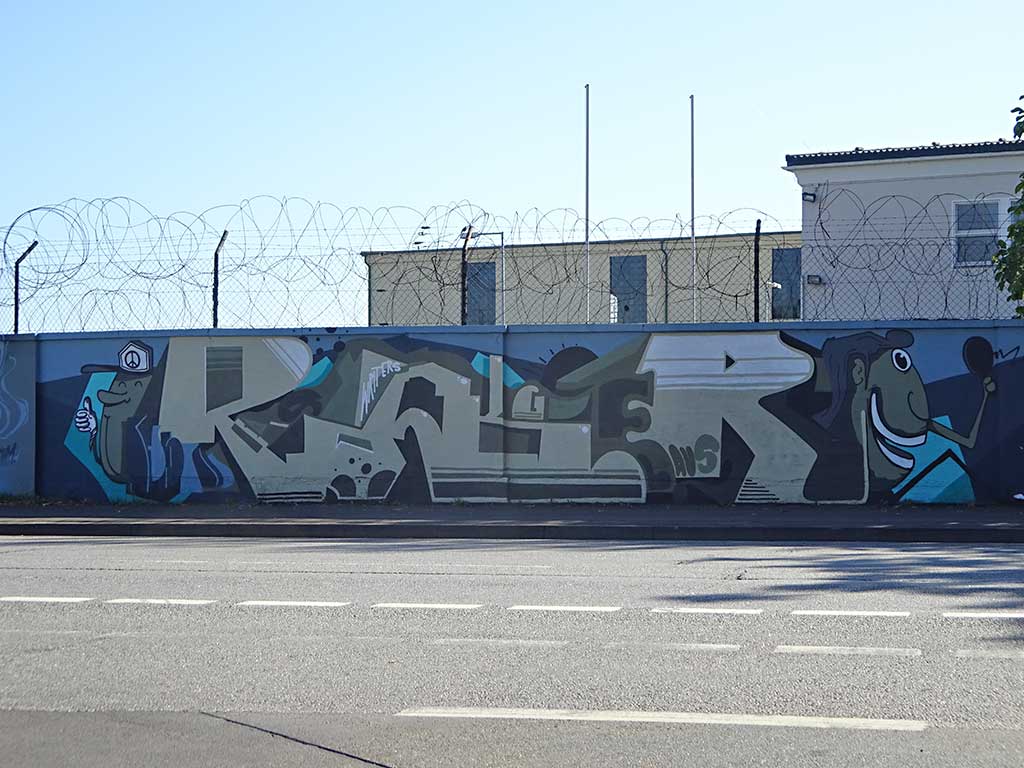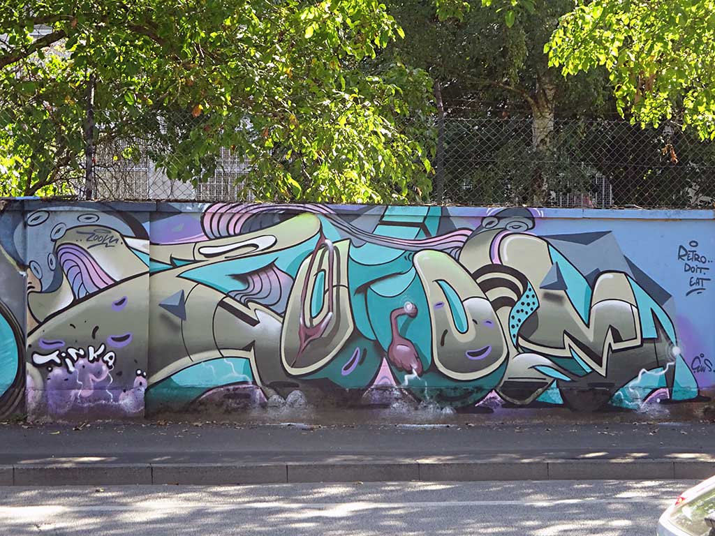 Hier noch ein kleiner Nachschlag in Sachen Meeting of Styles. Beim diesjährigen Graffitikunst-Festival in der hessischen Landeshauptstadt sind abseits der großflächigen Wände am Brückenkopf Mainz-Kastel auch noch andere Flächen bemalt worden, z.B. von den Easy Writers, die entlang der Boelckestraße aktiv waren.