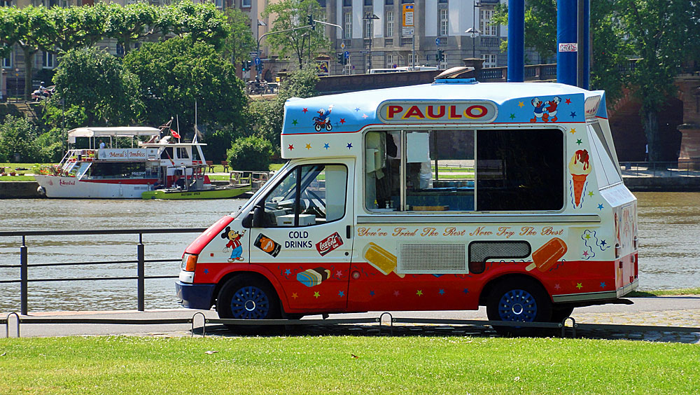 Merals Dönerschiff oder Paulos Getränke- und Eiswagen – wer am Mainufer heute wohl das Rennen macht? Merals Dönerschiff oder Paulos Getränke- und Eiswagen am Mainufer Tags:DönerschiffFrankfurt am MainGastronomieMeral's ImbissPaulo