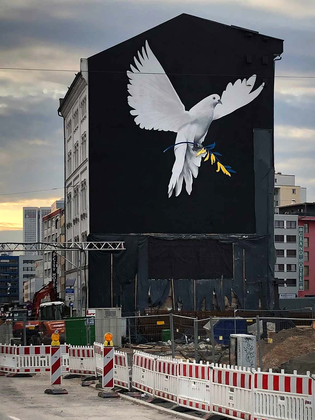 Riesiges Wandgemälde gegen Ukraine-Krieg – Friedenstaube in Frankfurt