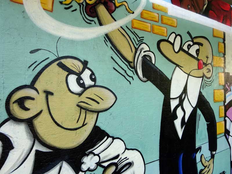 Das Großstadtdschungel-Mural sorgte aber nicht nur für Begeisterung. Das ist soweit noch nicht unüblich ist, irgendjemand hat immer etwas auszusetzen, aber in diesem Fall fielen die Kommentare möglicherweise doch etwas lebhafter aus. Neben den im Internet üblichen Sprüchen zu Qualität und Style eines neu entstandenen Graffitis, waren in diesem Fall vor allem die Auswahl der Wand und die dort übermalten alten Graffiti Gegenstand der Auseinandersetzung. Überspitzt formuliert: Wer darf, wann, wo, unter welchen Umständen, in welchem Stil, alte Graffiti übermalen. Oder eben nicht. Und wer legt das fest? Und warum sollte man sich daran halten? Und überhaupt.