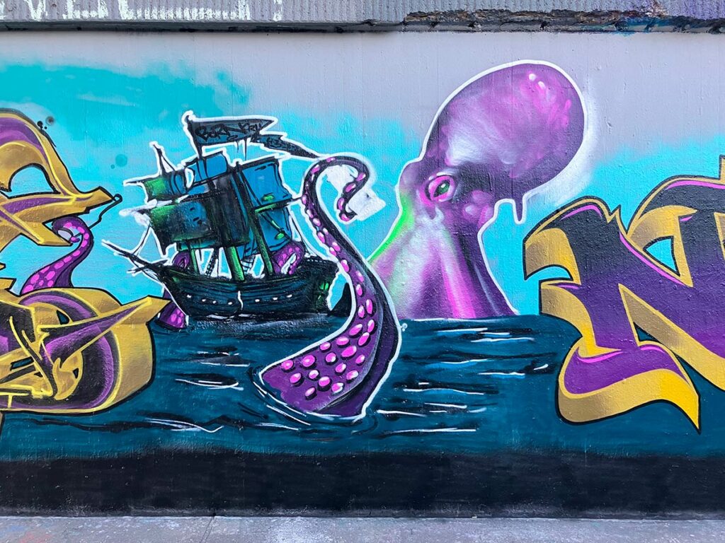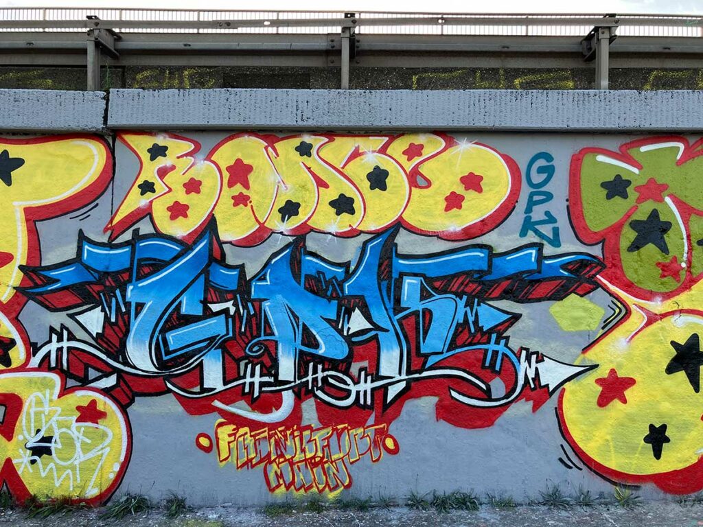Der Montana Store in Frankfurt feierte kürzlich seinen ersten Geburtstag mit einer Jam an der Hall of Fame am Ratswegkreisel. Zwei Posts mit Fotos davon habe ich bereits hier im Blog veröffentlicht, ein dritter und letzter dazu folgt heute mit dieser Übersicht. Aufgrund bescheidener Lichtverhältnisse im Bereich der Unterführung und den Übergangsbereichen sowie dem ungünstigen Verhältnis von maximal möglichem Abstand zur Breite manch eines Pieces fehlen allerdings einige wenige Motive.