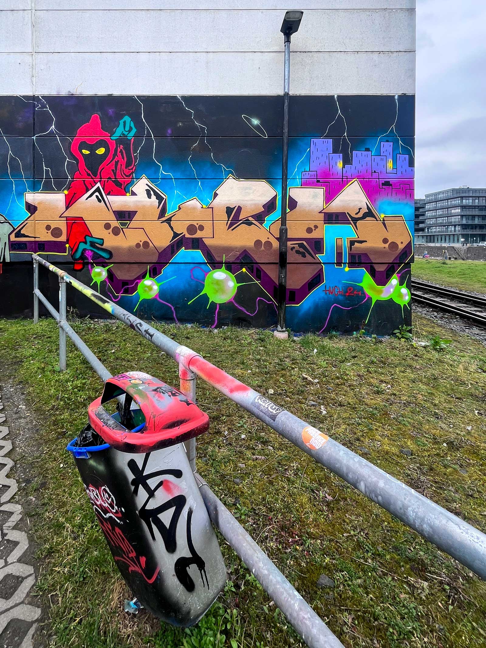 Eine Arbeit enthält ein Motiv, das ich bereits 1990 am Ratswegkreisel fotografiert habe, wobei mir nicht bekannt ist, ob diese Referenz bewusst auf den Writer von damals, Hexer, verweist. Es könnte sich ebenso um ein Motiv handeln, das aus einer anderen Quelle stammt, wie etwa einem anderem Piece oder Comic.