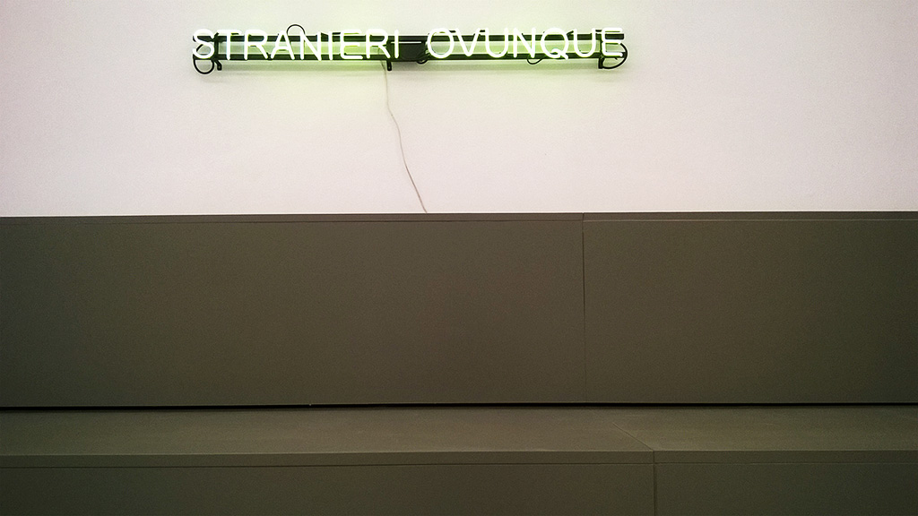 Den Auftakt bildete die Gegenüberstellung der Werke „We the people“ von Danh Vo und „Passer en Angleterre, Accès terminal transmanche, Calais, juillet 2007“ von Bruno Serralongue. Danh Vo ließ vor einigen Jahren eine Eins-zu-eins-Replik der Freiheitsstatue in Shanghai nachbauen und hat die weit über 200 Fragmente des Symbols für Freiheit und Unabhängigkeit in Sammlungen rund um die Welt verteilt und in Ausstellungen auf allen Kontinenten untergebracht. Im Portikus ist aktuell ein Teil des Fußes zu sehen. Bei „Passer en Angleterre, Accès terminal transmanche, Calais, juillet 2007“ handelt es sich um eine Fotografie, die den Moment des Wartens im Leben Geflüchteter an der französischen Küste festhält.