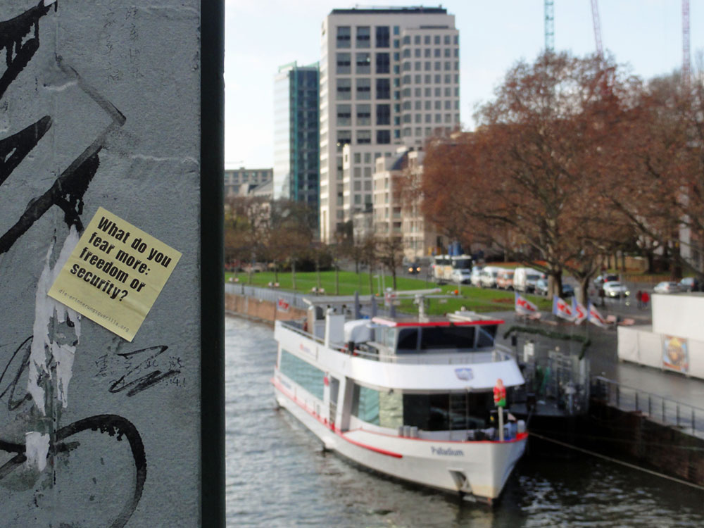 Heute mal etwas aus der Kategorie „Streetart zum Mitmachen“: Die Erinnerungsguerilla versteht sich als ein soziales Kunstprojekt, dass durch das Verkleben von Fragen auf kleinformartigen Stickern zum Denken und Mitmachen anregen möchte. Letzteres kann für den Mindesteinsatz von 2€ erfolgen, für diese Summe erhält man einen Block mit 25 Aufklebern einer Frage.