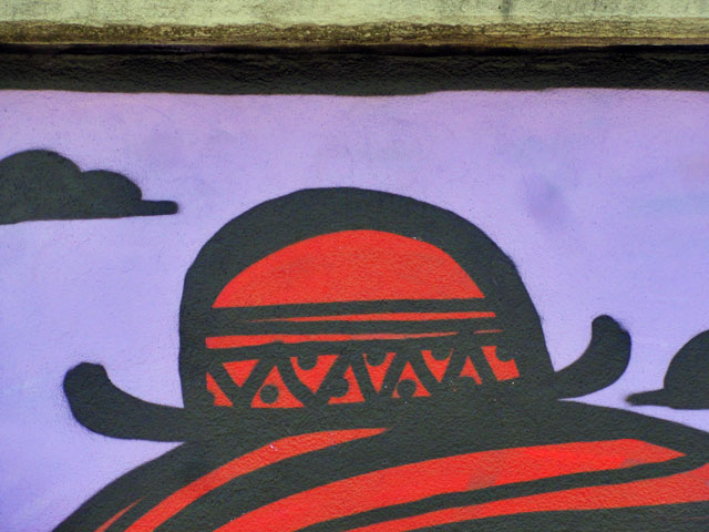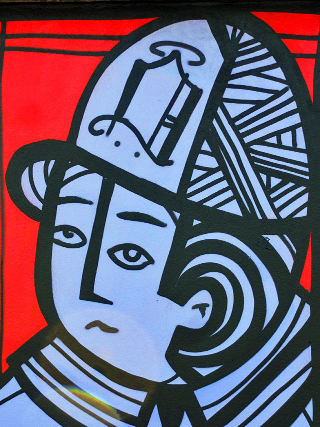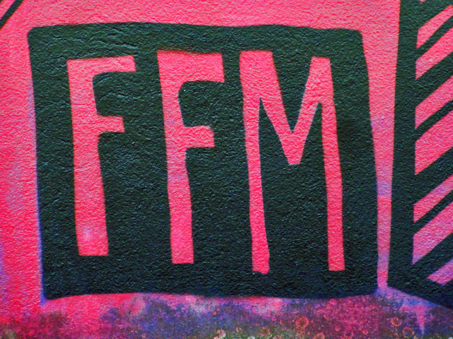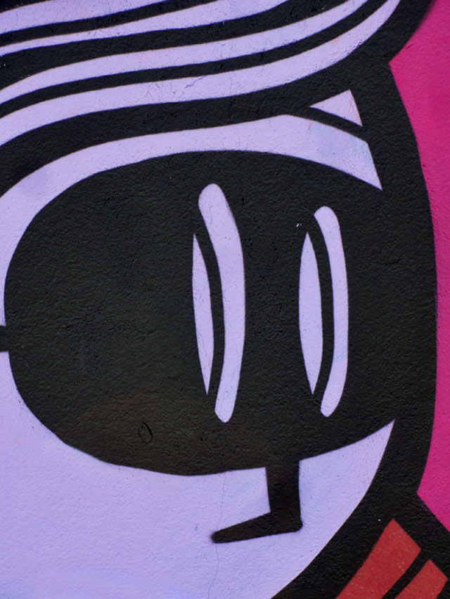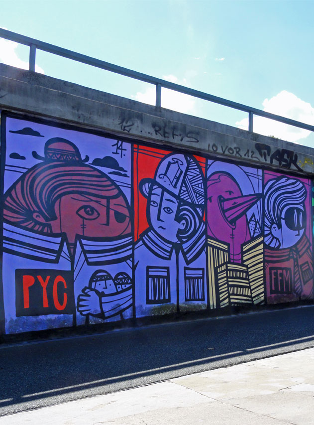 Im Gegensatz zu den großflächigen Bildern an der Friedensbrücke oder dem EZB-Neubau, sind Fußgänger in dieser Gegend eher selten, Autos und LKWs hingegen gibt es dort im Überfluss. Würde es für Frankfurt eine Heatmap zum Einsatz von hupenden Kraftfahrzeugen geben, würde diese Gegend sicher ganz weit vorne mit dabei sein.
