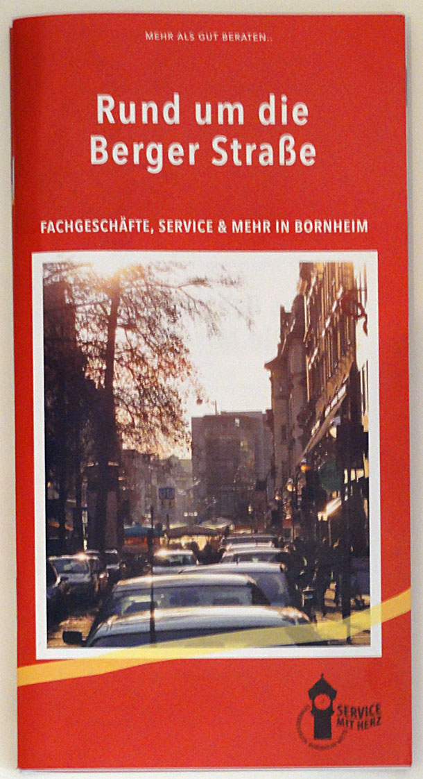 Der Gewerbeverein Bornheim Mitte e.V. hat kürzlich eine 64 Seiten starke Stadtteil-Broschüre veröffentlicht, in der zahlreiche Fachgeschäfte und Dienstleistungsbetriebe rund um die Berger Straße vorgestellt werden. Neben den Betrieben im Bornheimer Abschnitt der Berger Straße, u. a. auch mit denen hier im Blog bereits einmal vorgestellten Kreis zu Quadrat und Bio Spahn, werden auch Geschäfte vorgestellt, die man erst entdeckt, wenn man sein Glück auch mal in den Seiten- und Parallelstraßen der Berger Straße versucht. Während Bewohner*innen des Viertels diesbezüglich weitestgehend im Bilde sein dürften, mag für Leute, die sich in dieser Gegend nur besuchsweise einfinden und zumeist Ziele direkt auf der Berger Straße aufsuchen eventuell die eine oder andere interessante „Neuentdeckung“ dabei sein.