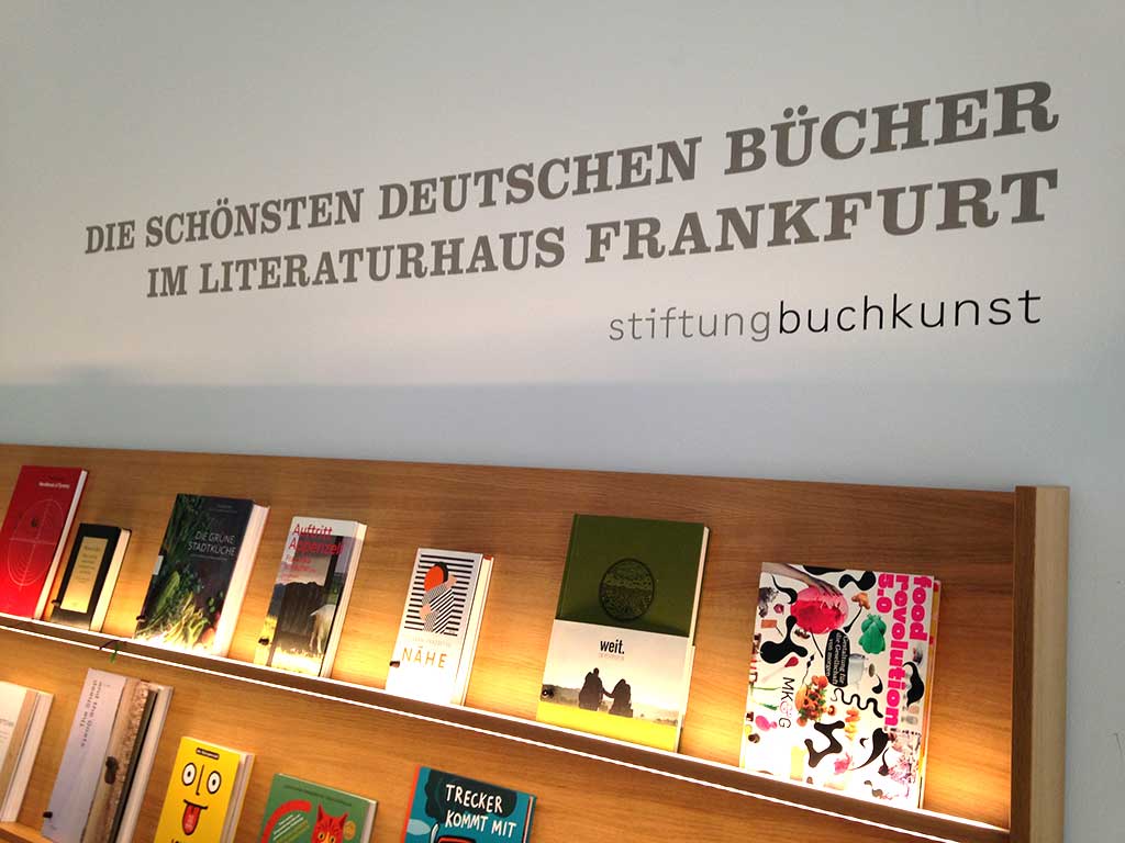 Wer weniger an den Inhalten von Büchern, aber umso mehr an deren Gestaltung, Konzeption und Verarbeitung interessiert ist, sollte im Literaturhaus Frankfurt vorbeischauen. Dort sind die 25 schönsten deutschen Bücher 2018 zur Ansicht ausgestellt, und zwar je 5 aus den Kategorien (1) „Allgemeine Literatur“, (2) „Wissenschaftliche Bücher, Fachbücher, Lehr- und Schulbücher, Sachbücher“, (3) „Ratgeber“, (4) „Kunstbücher, Fotobücher, Ausstellungskataloge“ und (5) „Kinderbücher, Jugendbücher“.