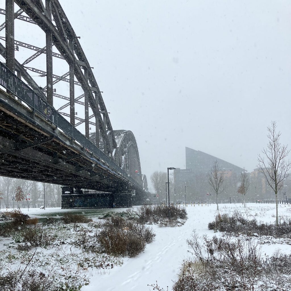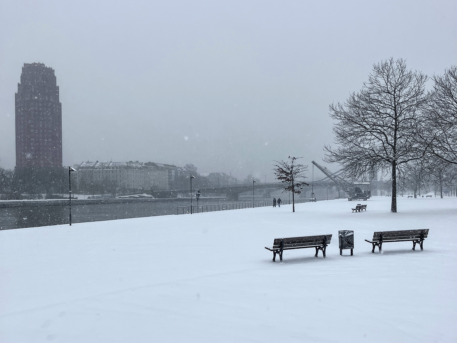 Der erste richtige Schnee war angekündigt, der erste richtige Schnee ist gefallen. Hier eine kleine Auswahl mit Fotos, die überwiegend am Frankfurter Mainufer im Ostend, von Hafenpark über Deutschherrnbrücke bis Ruhrorter und Weseler Werft, gemacht wurden.