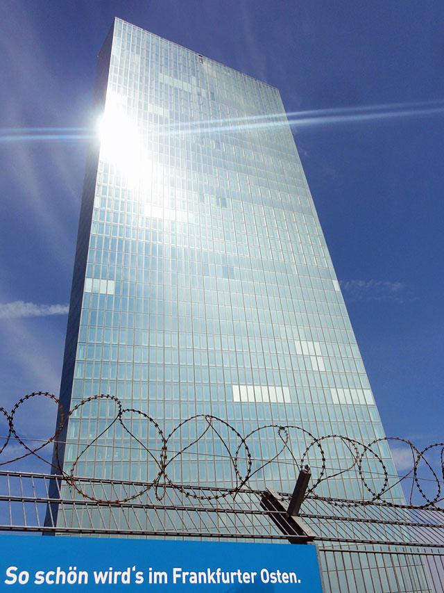 Klar, war angekündigt, trotzdem doof, denn ganz „so schön“, wie oben im Foto angeteasert, sieht das da jetzt, ohne die ganzen Graffiti-Malereien der Freiluftgalerie Frankfurt (EZB), ja wohl nicht mehr aus.