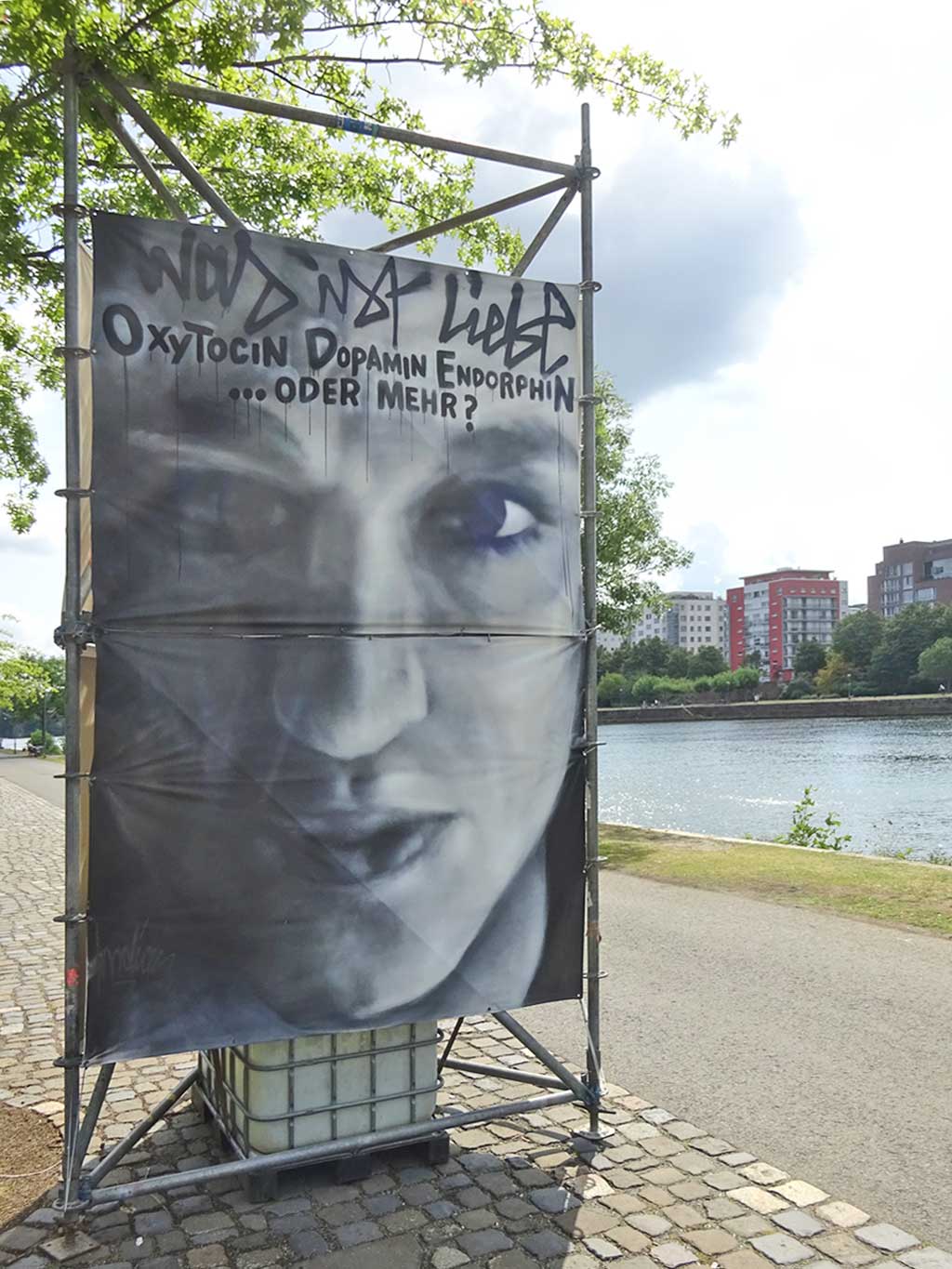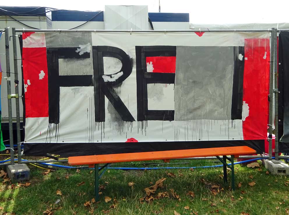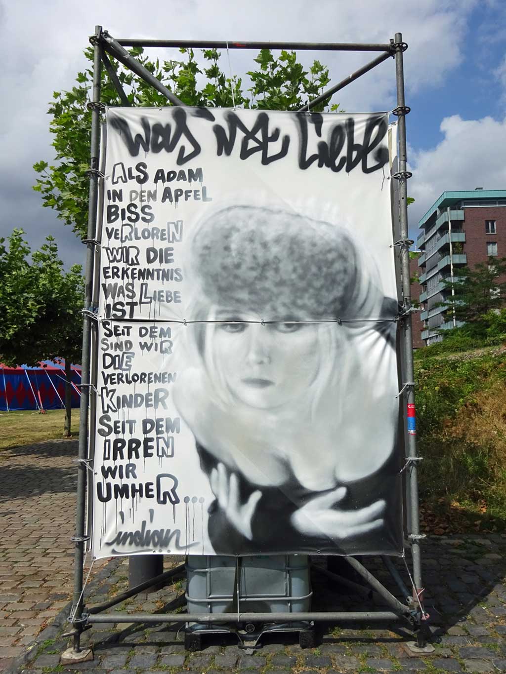 Graffitiartists haben die Sichtschutzplanen auf dem Veranstaltungsgelände an der Weseler Werf in Frankfurt künstlerisch neu gestaltet. Neben einigen Motiven aus dem Vorjahr, sind diesmal vor allem neue Bilder von Indian, aber auch von Boboter One, Knstfhlr, Obskur, Uzo u.a. zu sehen. Letzter Tag der Sommerwerft ist übrigens schon am Sonntag, 4. August 2019.