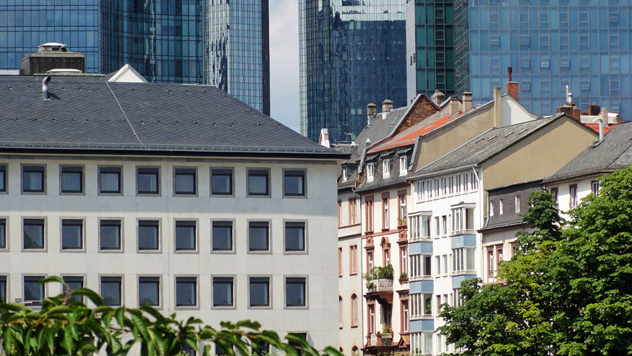 Die Reihe „Stadtbilder Frankfurt“ mit (unbeabsichtigtem) Fokus auf Architektur, darunter unterschiedliche Perspektiven auf die Skyline…