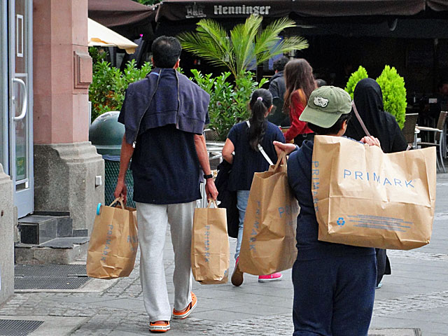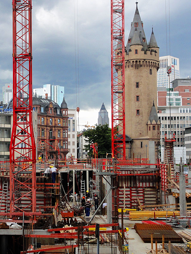Fotos aus Frankfurt am Main, August 2013 – Mit von der Partie: Das Primark-Shopping-Overkill in der City, das Gorilla Café, Mispelchen, unterschiedliche Baustellen und bunte, als auch ruinöse Fassaden.