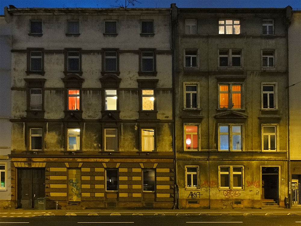 Schönes Bild mit den beleuchteten Fenstern auf der Hoehenstrasse
