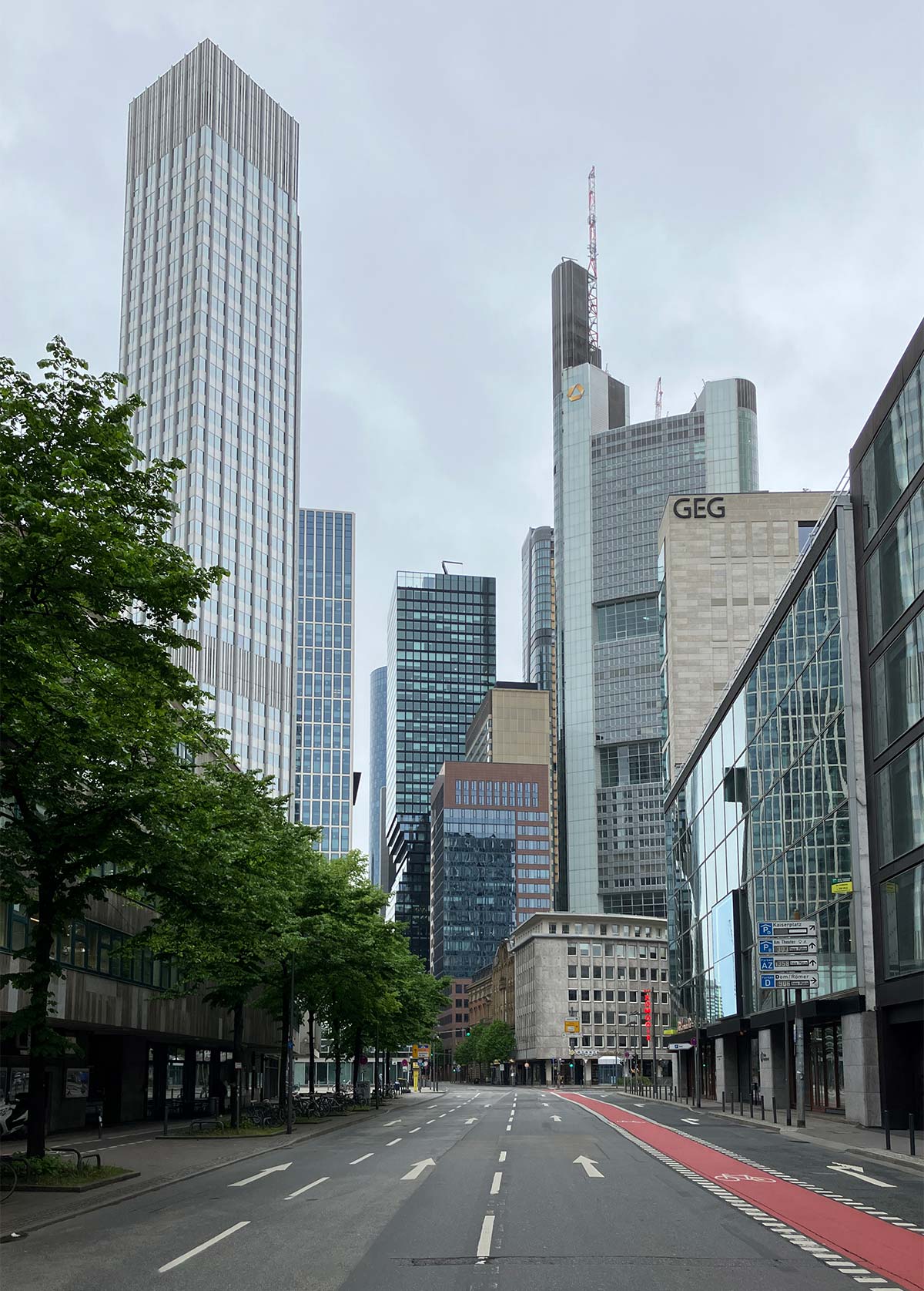 Der Fokus der Reihe Stadtbilder Frankfurt liegt diesmal auf der Gegend zwischen dem sogenannten Bankenviertel und dem Hauptbahnhof, wenngleich das unbeabsichtigt war, aber die Auswahl der Fotos für diese April-Übersicht hat es nun einmal so ergeben. Außerdem zu sehen: Weiße Streifen im Dialog (Sachsenhausen), Blauregen (Westend , Gutleutviertel) und das Industriegebiet (Ostend).