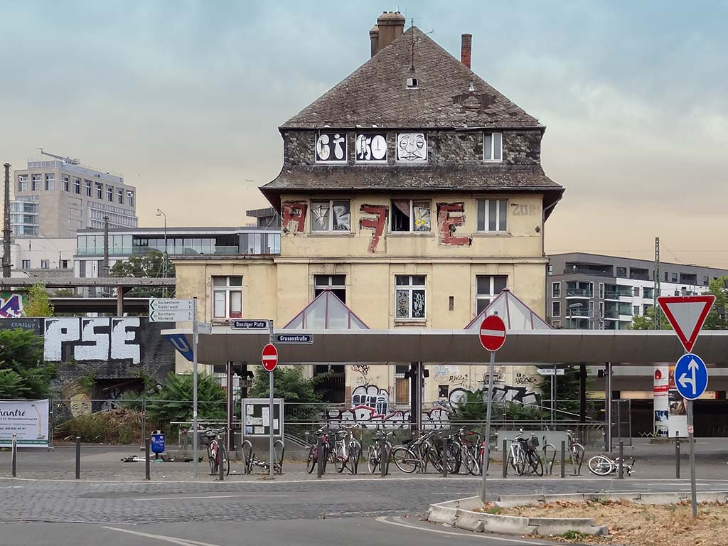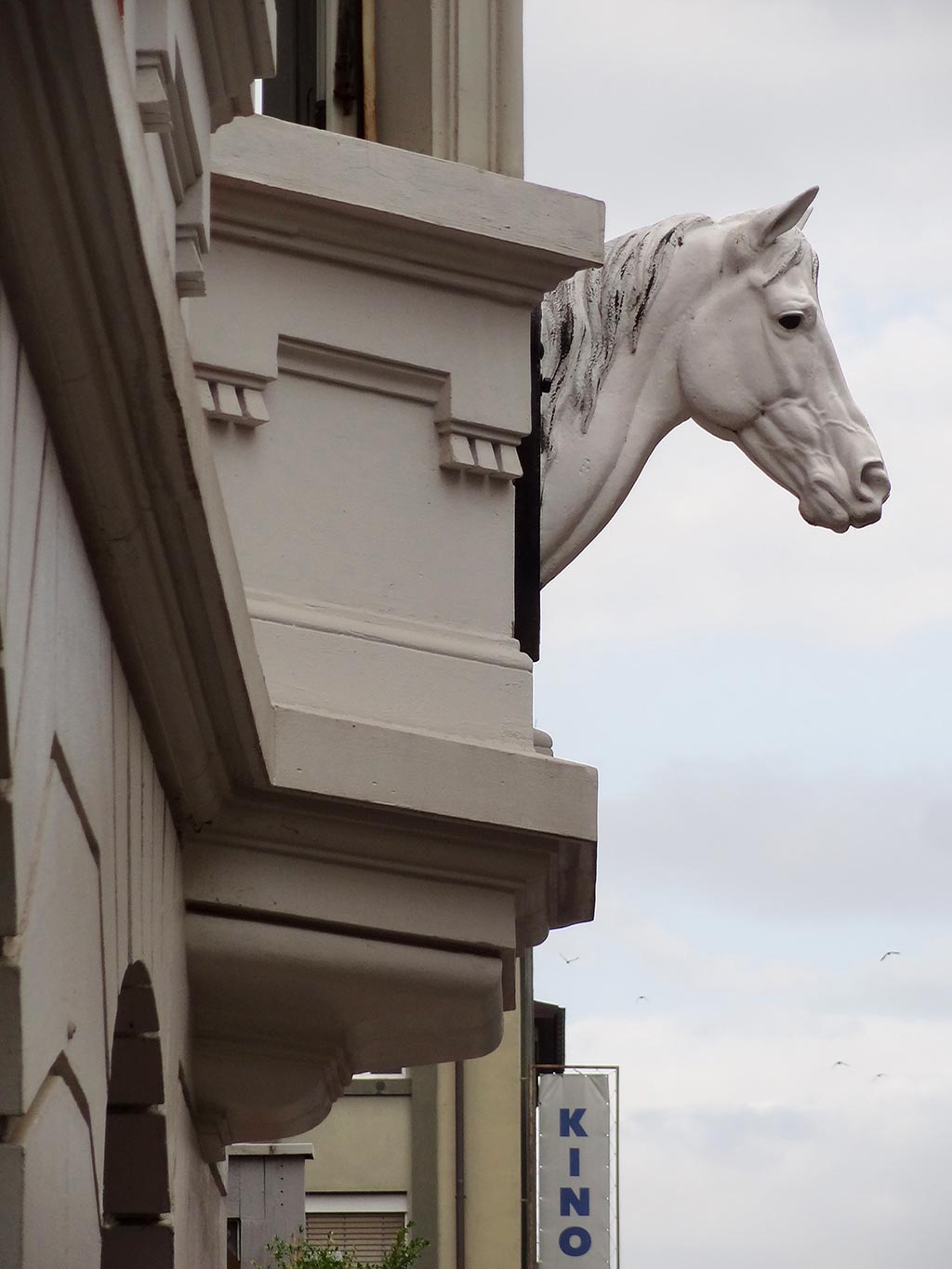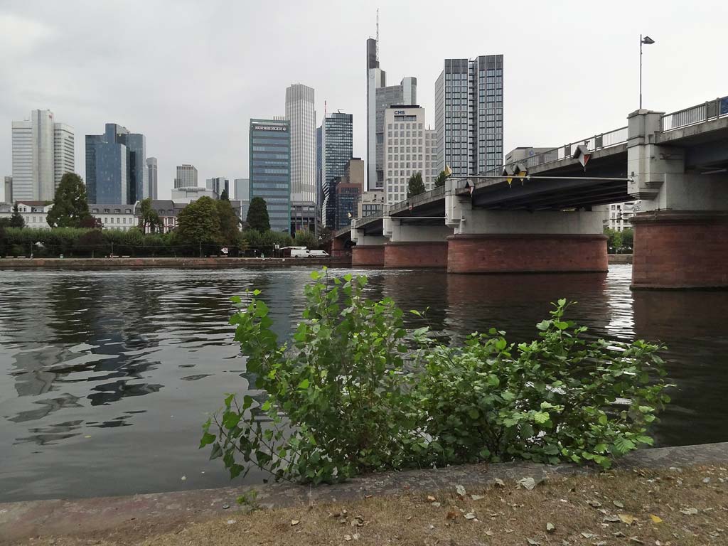 Die Fotoreihe Stadtbilder Frankfurt diesmal u. a. mit Traditionellem wie Bembel und Kerbebaum, Filmweltassoziationen anhand von Fassadenschmuck und Kioskname und Architektonisches von Klinkerbau über Beton bis zur Skyline.