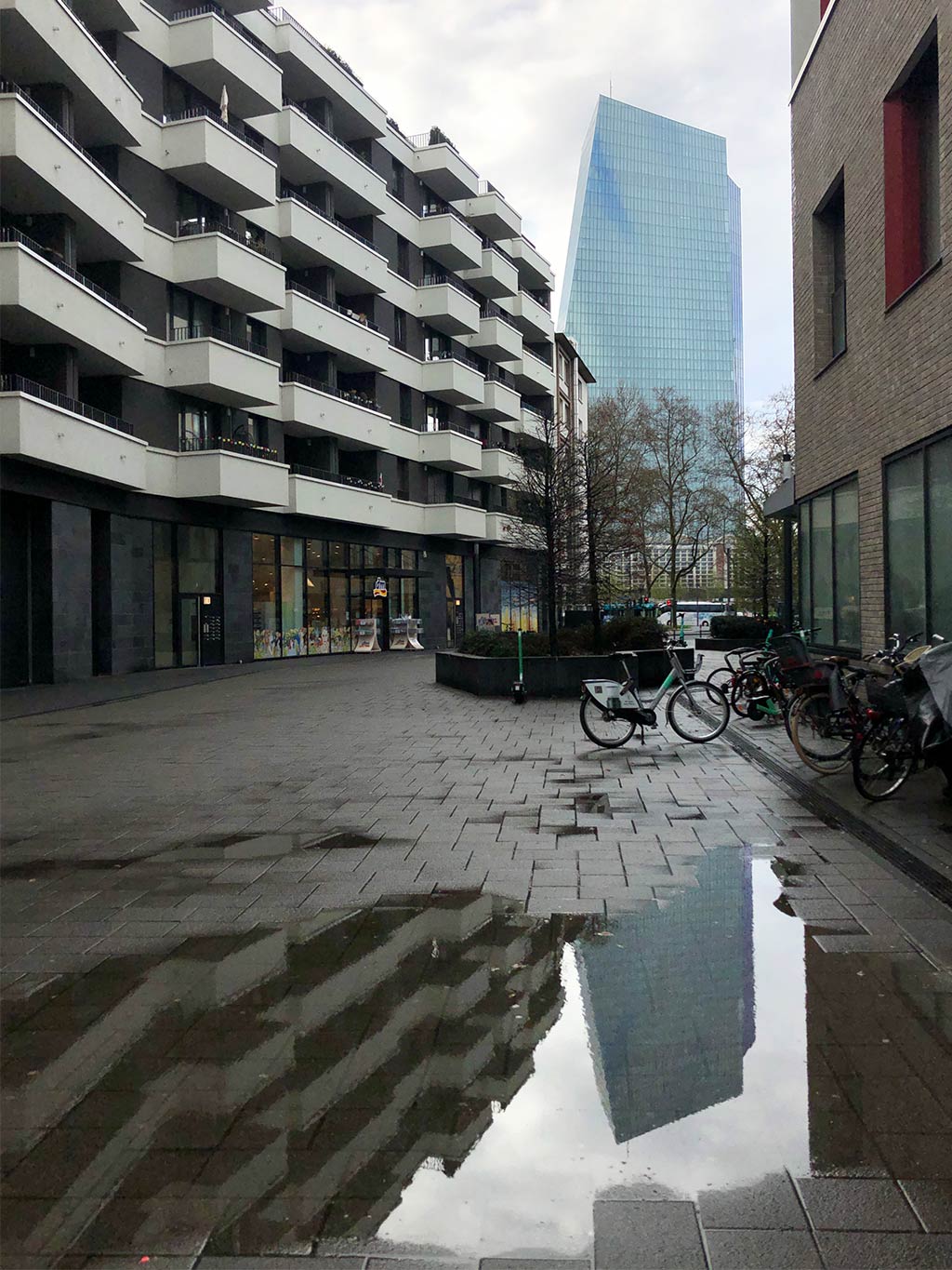 Die Fotoreihe Stadtbilder Frankfurt mit 14 im März aufgenommenen Fotos, darunter der Phönix aus der Asche in der Altstadt, ein paar B- und C-Ebenen-Fotos aus U-Bahn-Stationen, einem Porsche, der das Irgendwas-Kreatives-mit-069-Game durchgespielt hat, chinesischen und japanischen Akzenten, das leerstehende Berger Kino u. v. m.