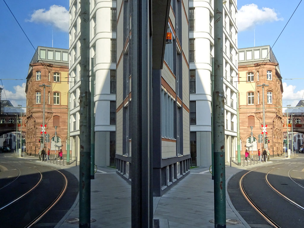 Mit Absperrpfosten, Beleuchtungen, Bodenbeschriftungen, Schattenwürfen, Spiegelungen, Zahlenspielen und anderen Krimskrams geht es in das September-Update der Stadtbilder Frankfurt-Reihe. Looki, looki!