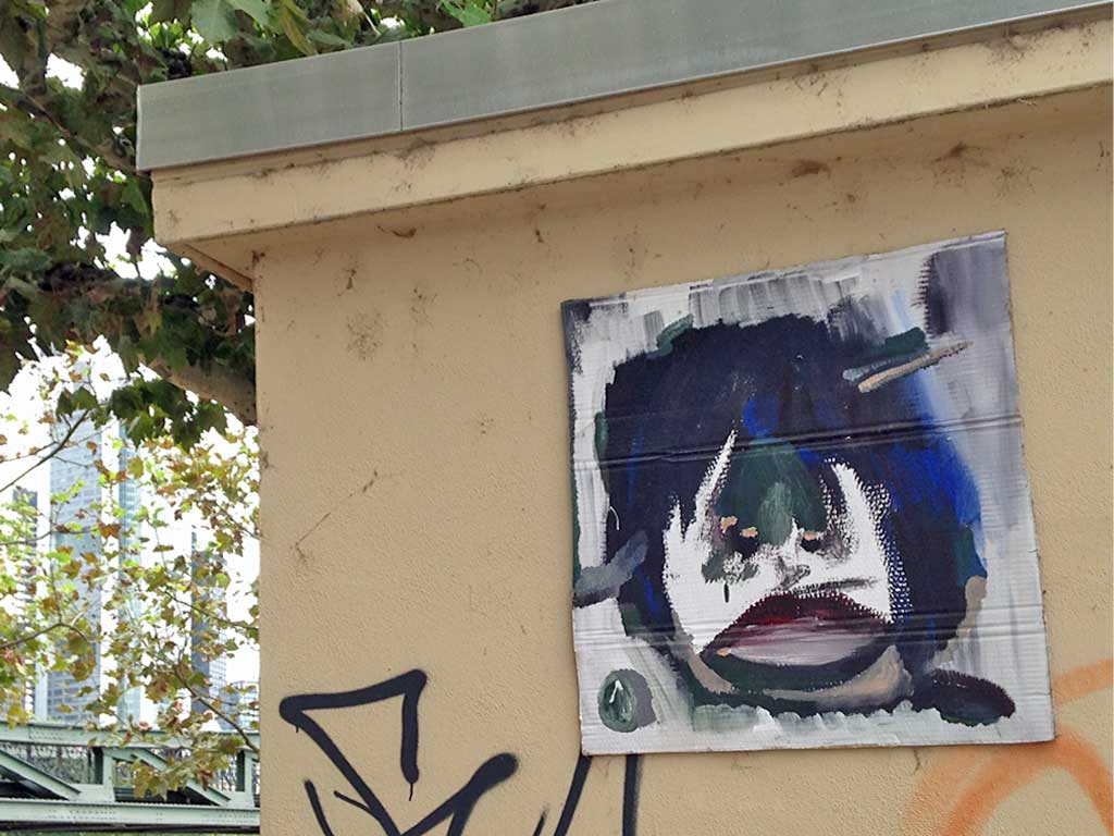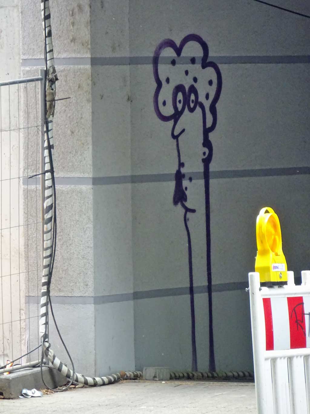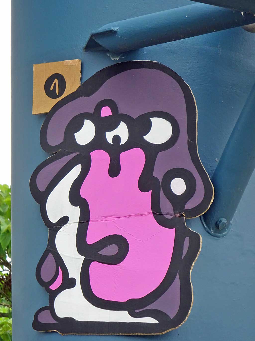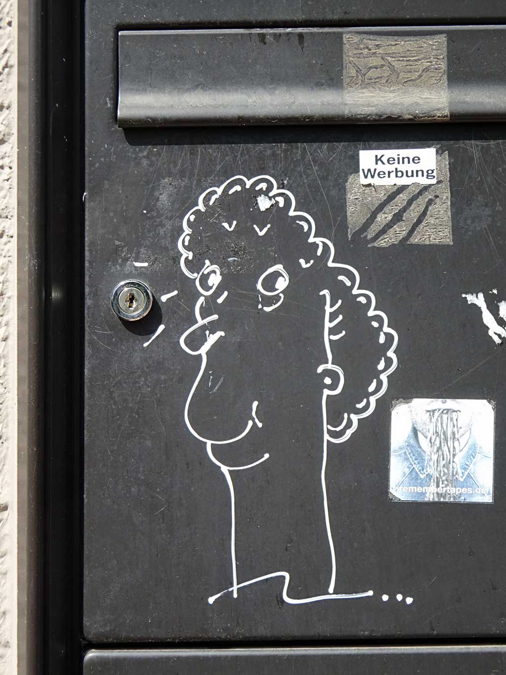 Seit Juni vergangenen Jahres ist das nun schon sechste Beitrag hier im Blog, in dem das Schaffen von Treppe 1. OG dokumentiert wird. Besonders Versandaufkleber und Kartons werden als Träger von Ideen umfunktioniert und mit Skizzen und Malereien dem öffentlichen Raum übergeben. Wiederkehrende Motive sind Bananen und Gesichter.