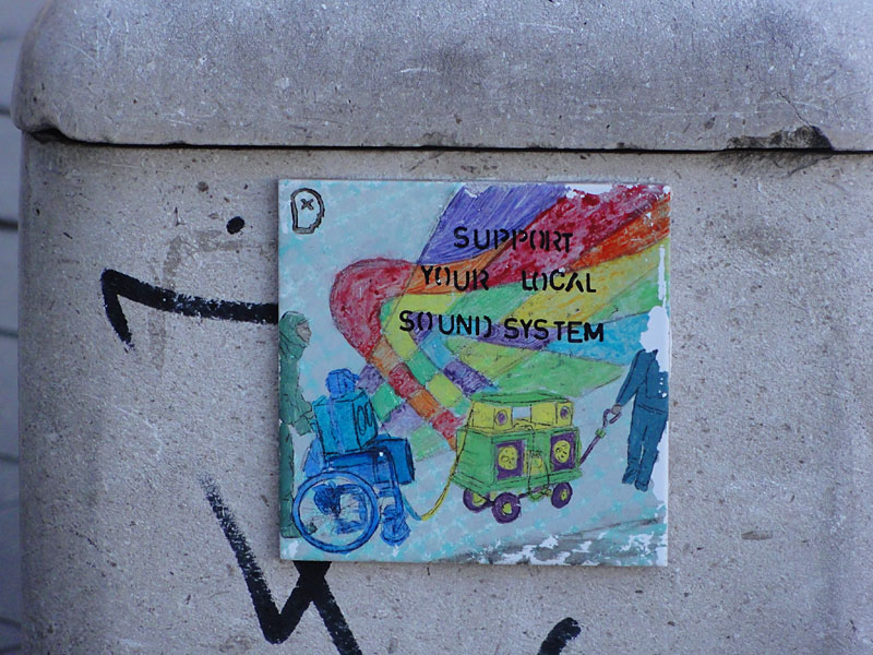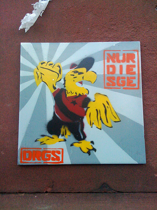 Fliesen, wie auch Kacheln und Bretter, gefallen mir ziemlich gut, allerdings scheinen diese Formate nicht all zu oft den Weg in den öffentlichen Räum zu finden. Anbei eine erste Zusammenstellung bemalter, besprühter und beklebter Fundstücke aus Frankfurt.