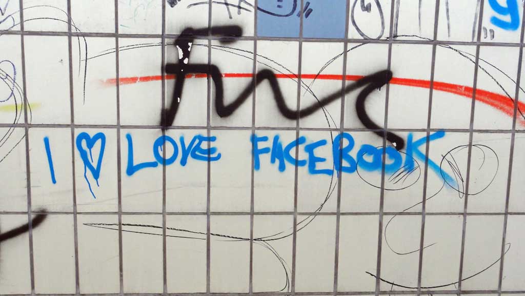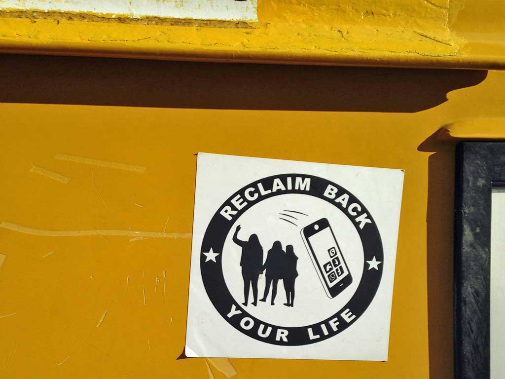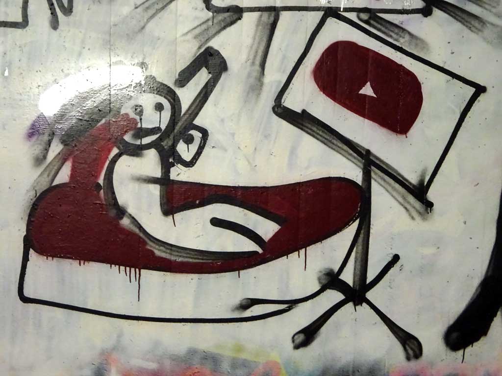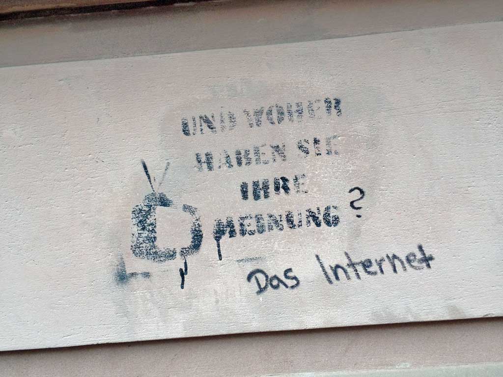 Auch in den Straßen spielt die Onlinewelt eine Rolle. Immer wieder sind Textbotschaften, Aufkleber und Graffiti zu entdecken, die sich auf unterschiedlichste Weise über Internet, Social Media & Co. auslassen.