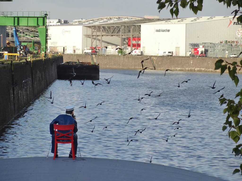 Pfeife rauchender Seemann am Nordbecken des Osthafens