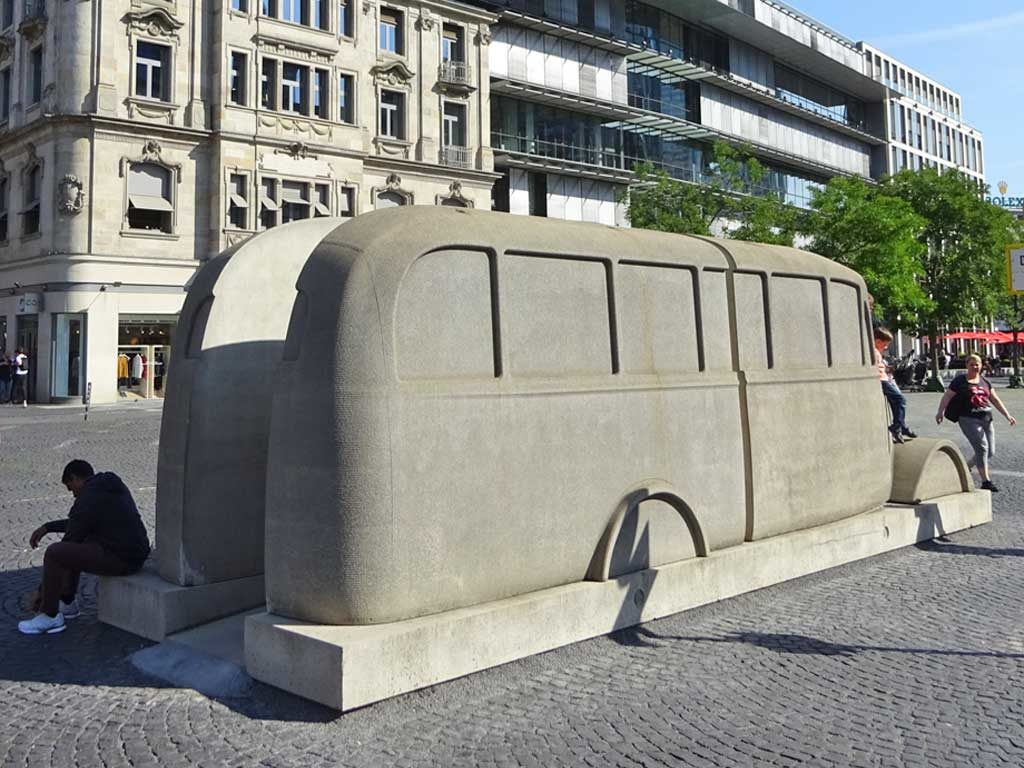 Mit dem reisenden "Denkmal der Grauen Busse" am Rathenauplatz, gedenkt die Stadt Frankfurt am Main…