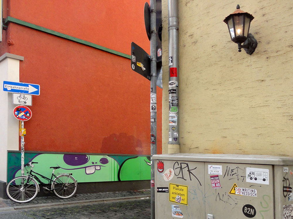 Streetart meets Ebbelwoi: 5stars bemalt die für Graffiti-Kunst freigegebene Fläche am Haus des Fichtekränzi in…
