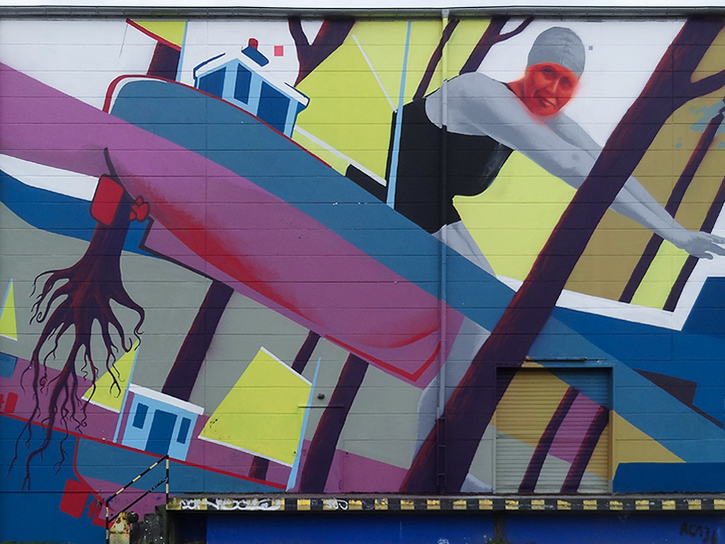 Frankfurt-Osthafen: Wandbild von Cesar One und Mind 21