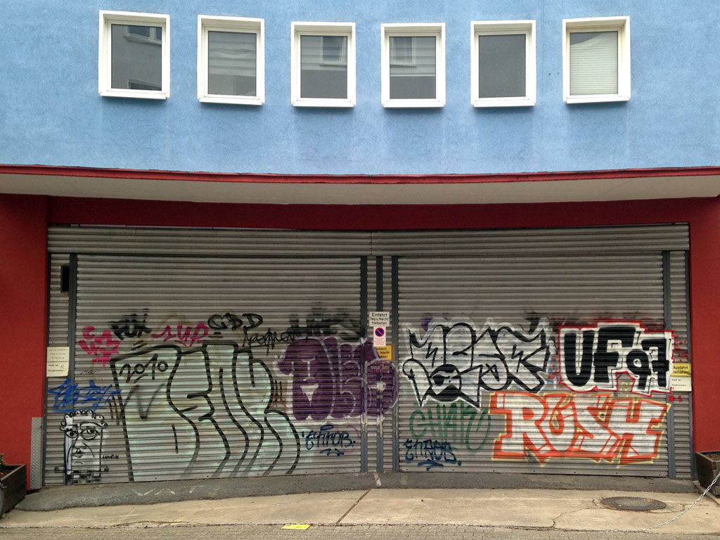 Immer wieder ein beliebtes Ziel für Sprühdosen-Malereien: Garagentüren und Außenrollläden.
