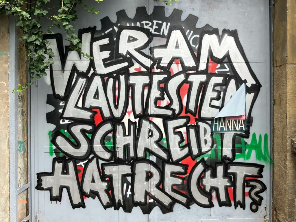 Unweit des „Niemand muss Bulle sein“-Murals, um genau zu sein nur eine Ecke weiter, ebenfalls…