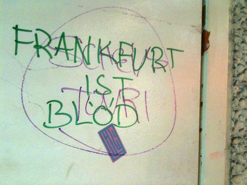 Eine Foto-Sammlung mit Äußerungen, die sich thematisch der Stadt Frankfurt annehmen und bei der Gelegenheit…