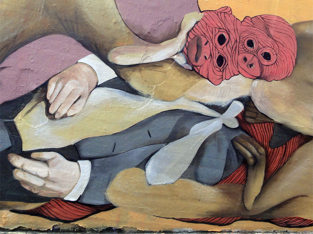 Während das Bild von Guido Zimmermann einen Taubenschwarm zeigt, sind beim Motiv der Künstlerin Missare…