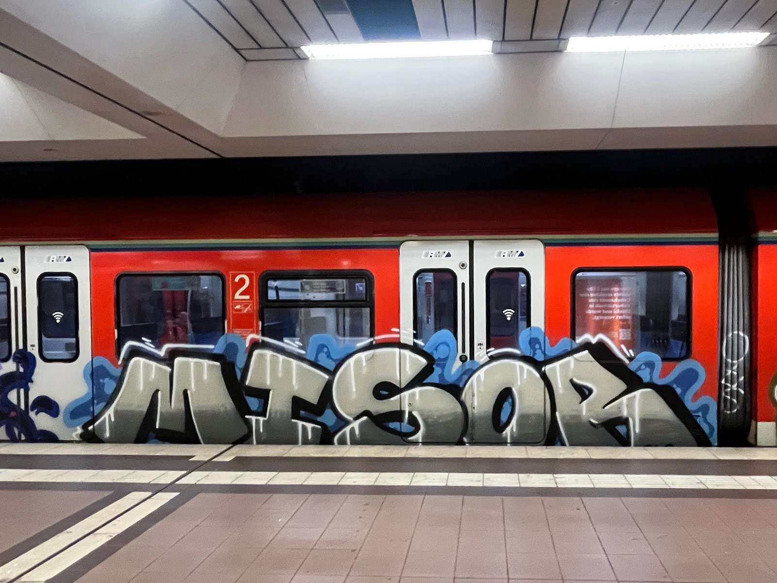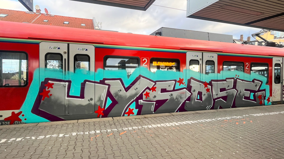 Der Frankfurter S-Bahn-Verkehr ist auch im letzten Monat dieses Jahres mit Buchstabengestaltungen jeglicher Couleur versehen, einzig ein Schneemann bricht mit dieser Monotonie.