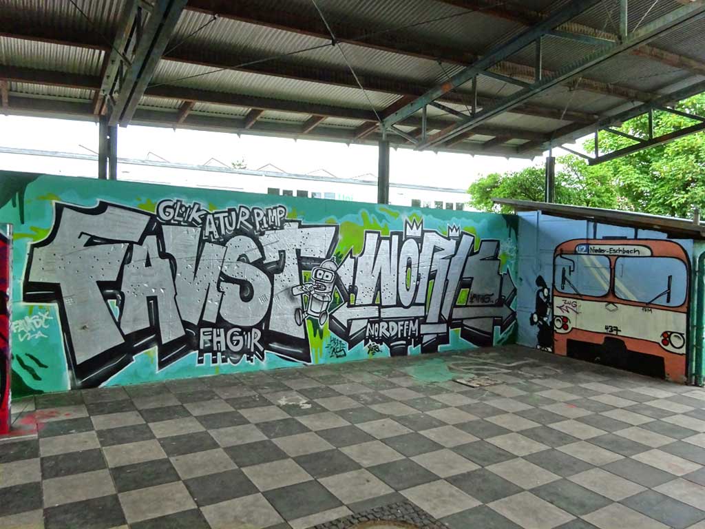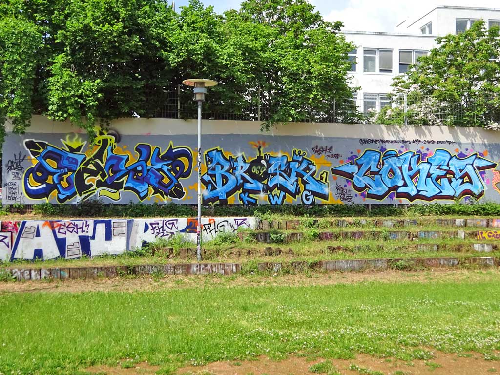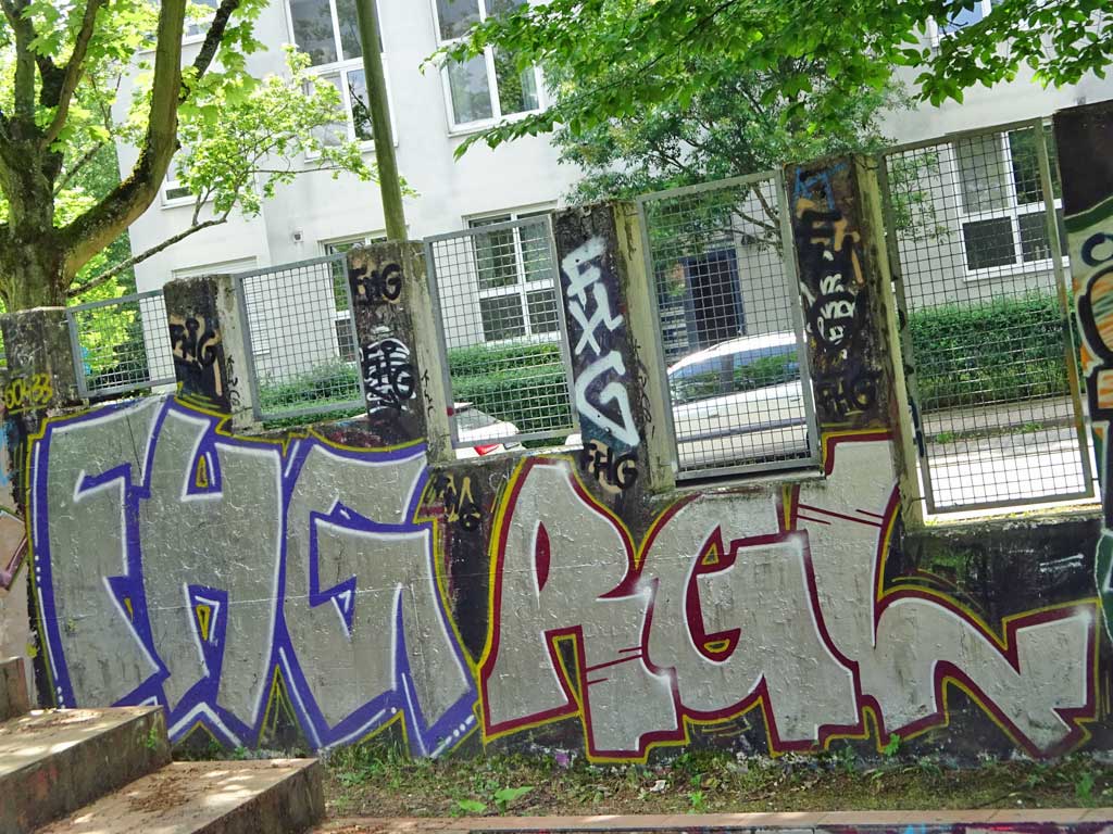 Das Jugendhaus am Bügel ist ein offenes Freizeit- und Begegnungszentrum für junge Menschen von 12 bis 21 Jahren im Frankfurter Norden. Die Besucher*innen können sich dort frei aufhalten und vielfältige Angebote der Einrichtung nutzen. Das großzügige Außengelände ist, auch viele Jahre nach meinem letzten Besuch, mit zahlreichen Malereien unterschiedlichster Urban Art gestaltet. Heute gibt’s die ersten 22 Fotos von dort, ein weiterer Blogpost wird folgen.