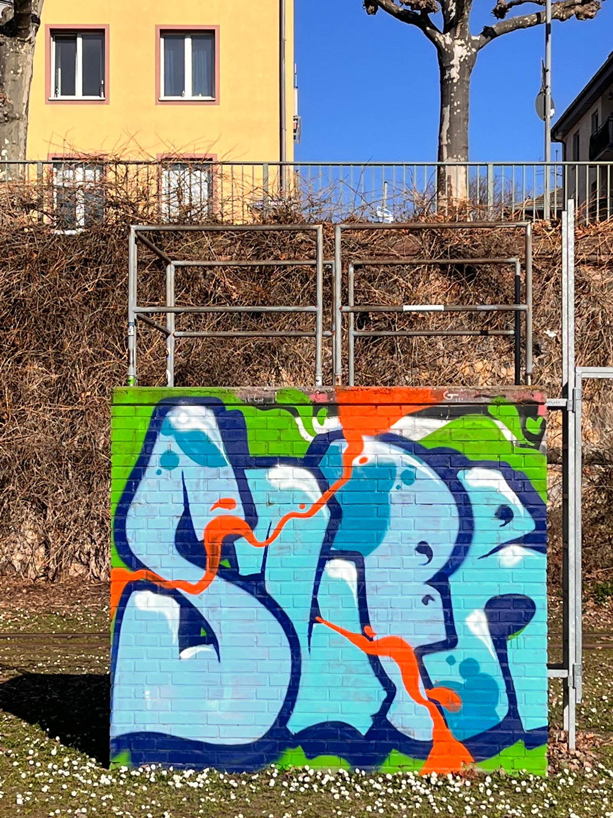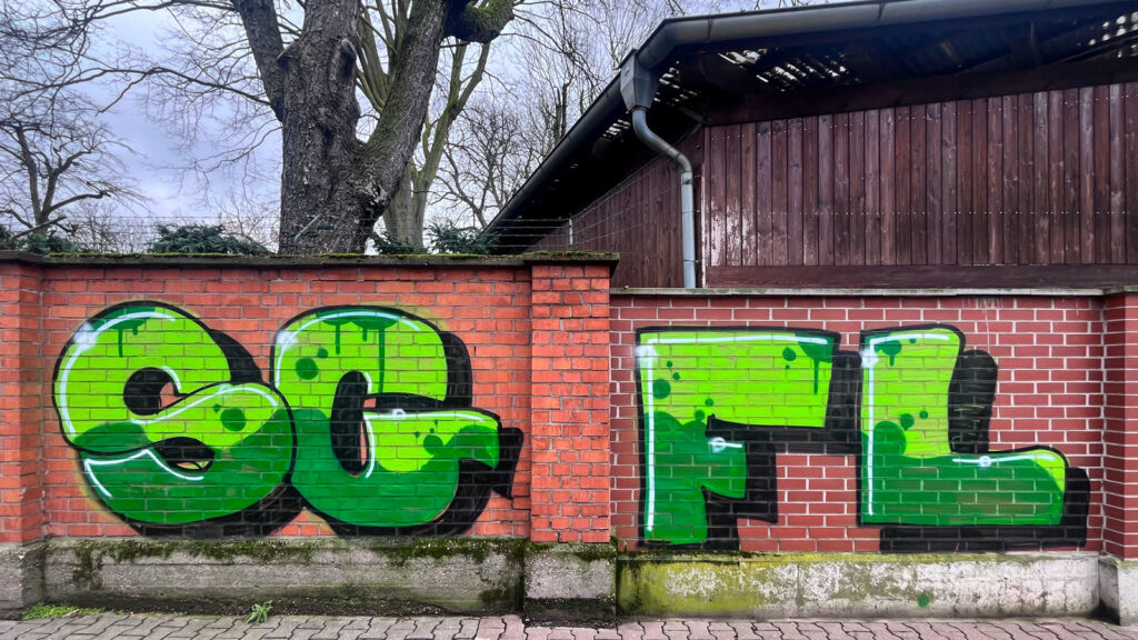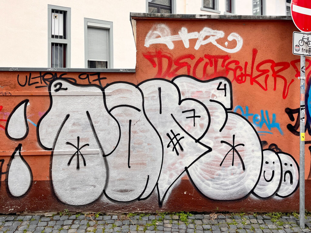 Urban-Art-Allerlei aus Frankfurt, gespottet im Februar 2025, diesmal mit für diese Themenreihe ungewöhnlich vielen Fundstücken zu farbig gesprühten Namen und Abbreviaturen.