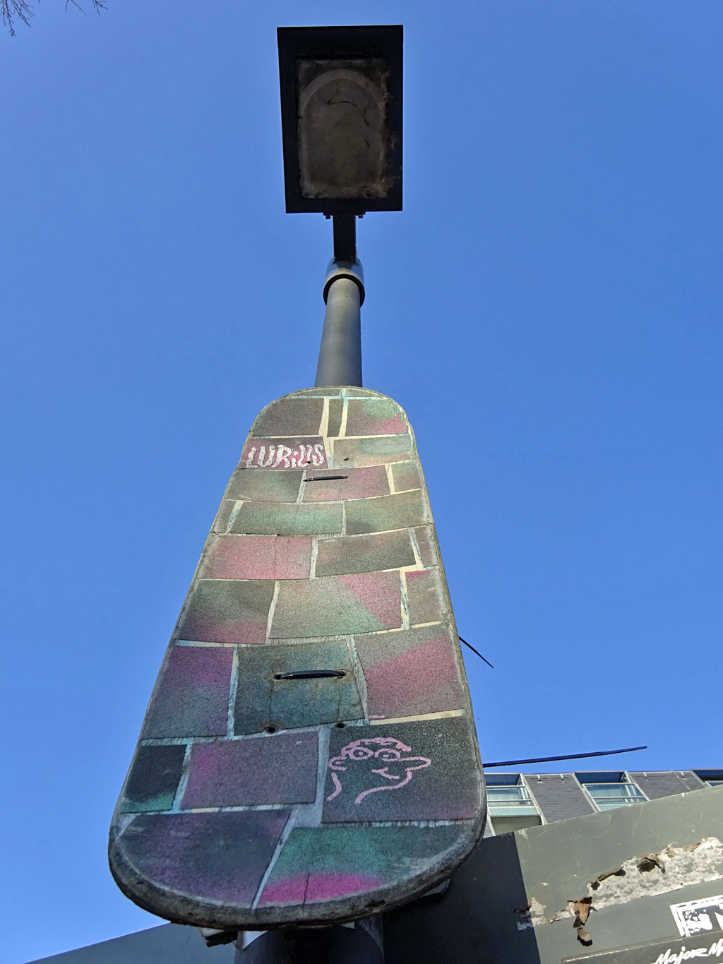 Urban Art Frankfurt - Skateboard an Straßenleuchte