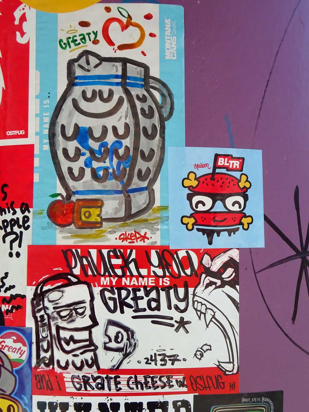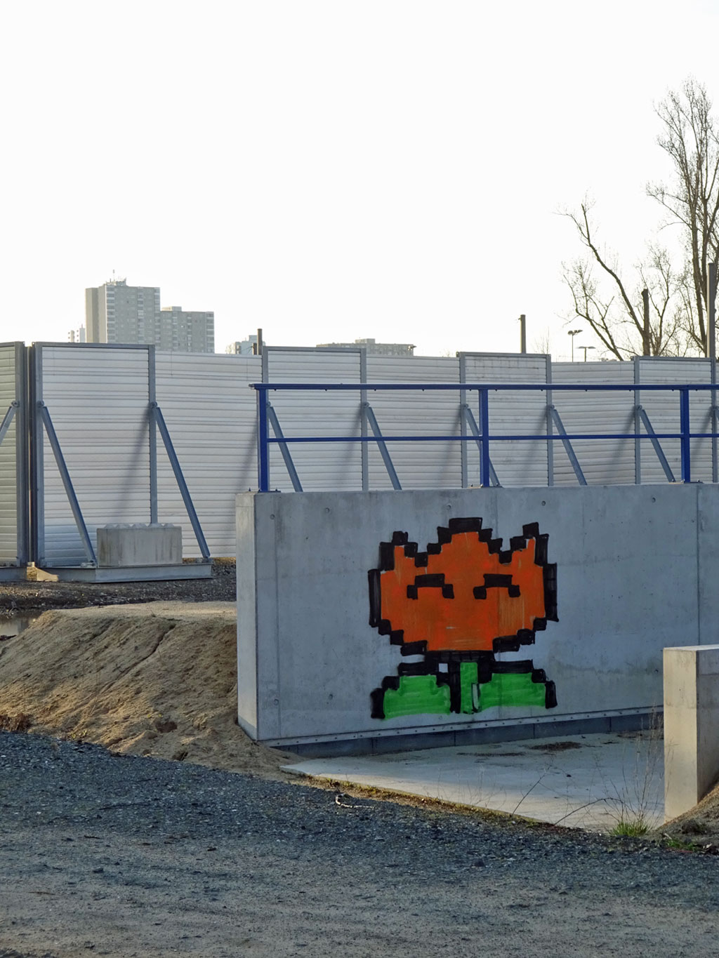 Die Stadt wird bunter! Frühlingsbedingt liegt das an der Farbvielfalt der Blüten, aber auch Urban Art trägt seinen Teil dazu bei. Im März ließen sich wieder zahlreiche neue Aufkleber und mit Malerrollen und Sprühdosen vollbrachte Werke in den Straßen, an den Mauern und über den Dächern entdecken.