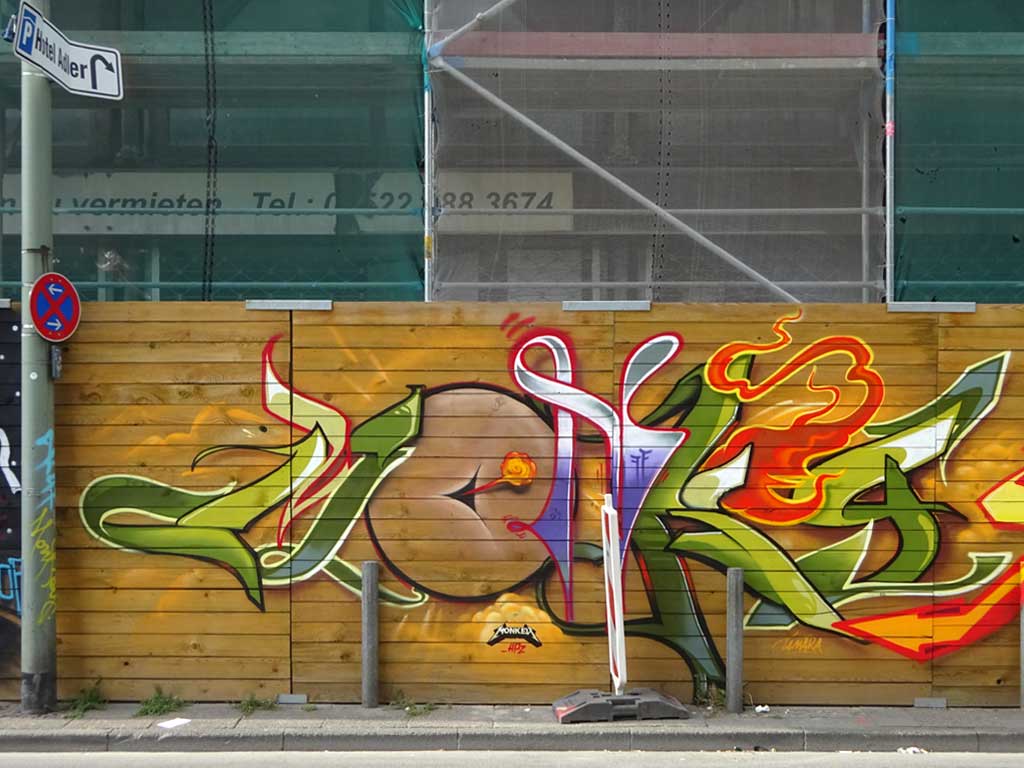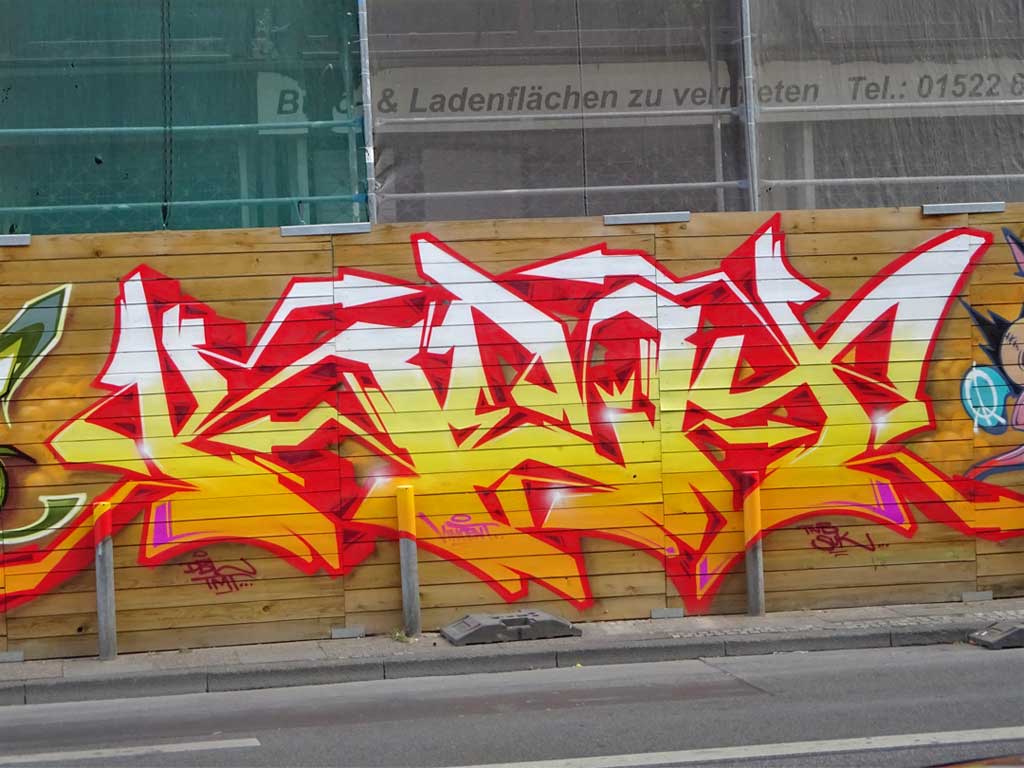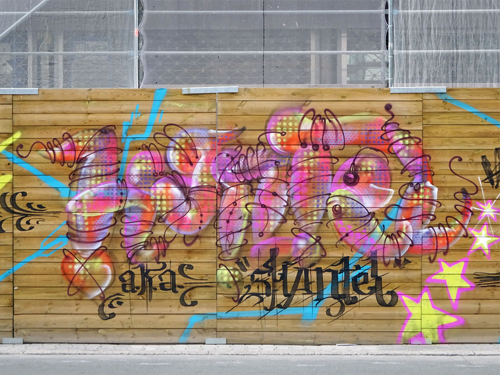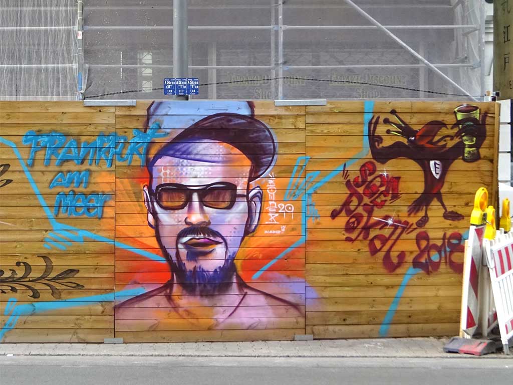 Knapp drei Jahre nach den Malereien am Bauzaun des damals noch in der Entstehung befindlichen Komplexes aus Fernbusbahnhof, Hotel und Parkhaus, wurde kürzlich an anderer Stelle unweit des Frankfurter Hauptbahnhofs erneut ein Bauzaun mit Urban Art künstlerisch umgestaltet.