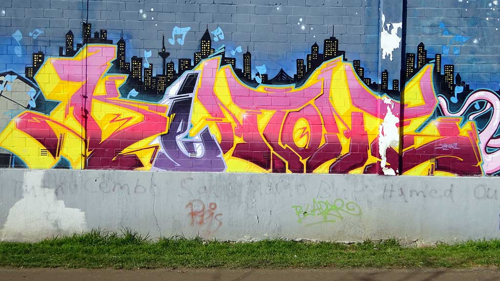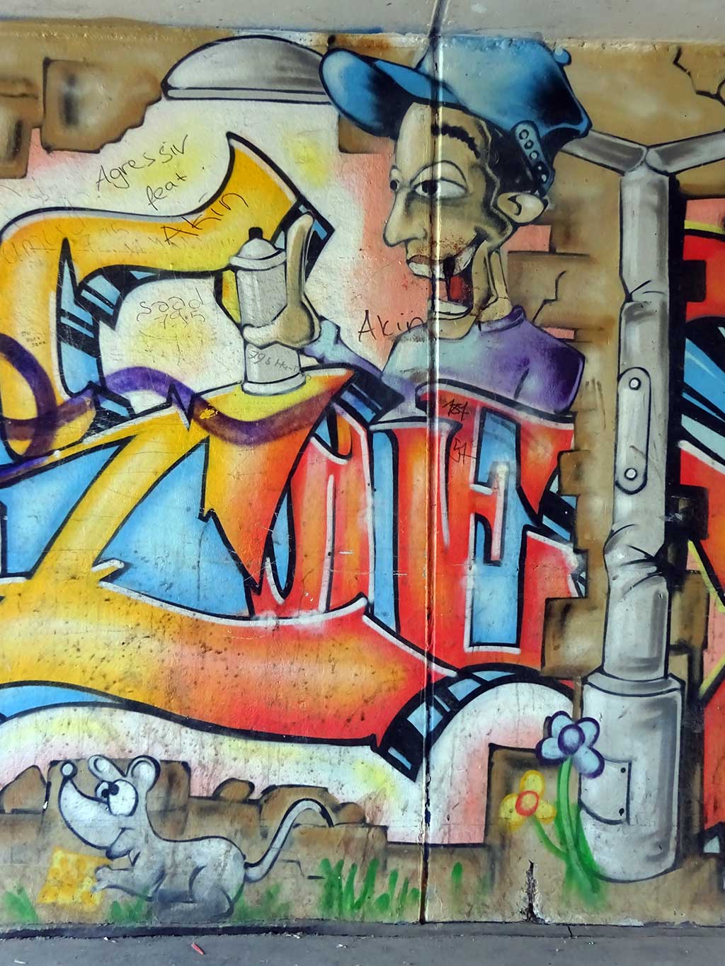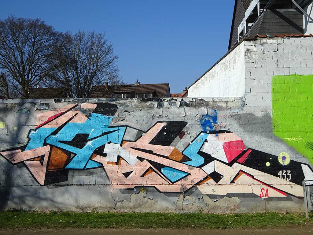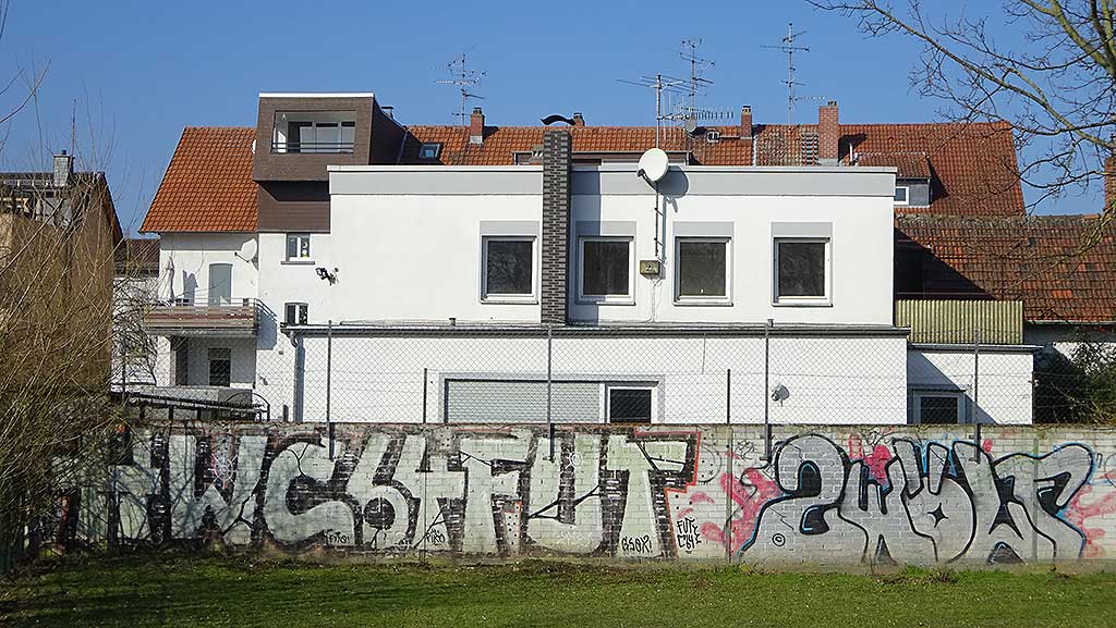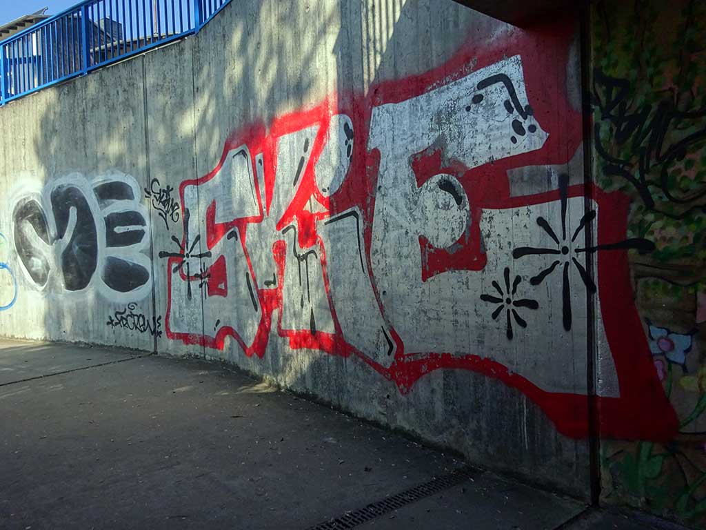 Hattersheim sehen und… auf die Bahn warten. Aber immerhin, nur eine Station und man hat wieder Frankfurter Boden unter den Füßen. Hier etwas Urban Art, die sich nur unweit des Hattersheimer Bahnhofs befindet. Am Werk waren u. a. Bomber, Can Two, Jens Shoshin, Kent One, Rake und Vale.